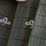 バインディングにはローズウッド、ヘッドトップにもブラジリアンローズウッドを贅沢にセレクトし、ロゴにはアウトラインに白蝶貝、内側にメキシコ貝を採用したスペシャル仕様です。