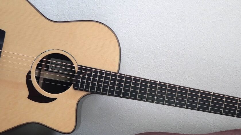 トップ材には、ベアクロウの入ったジャーマンスプルースをセレクト。