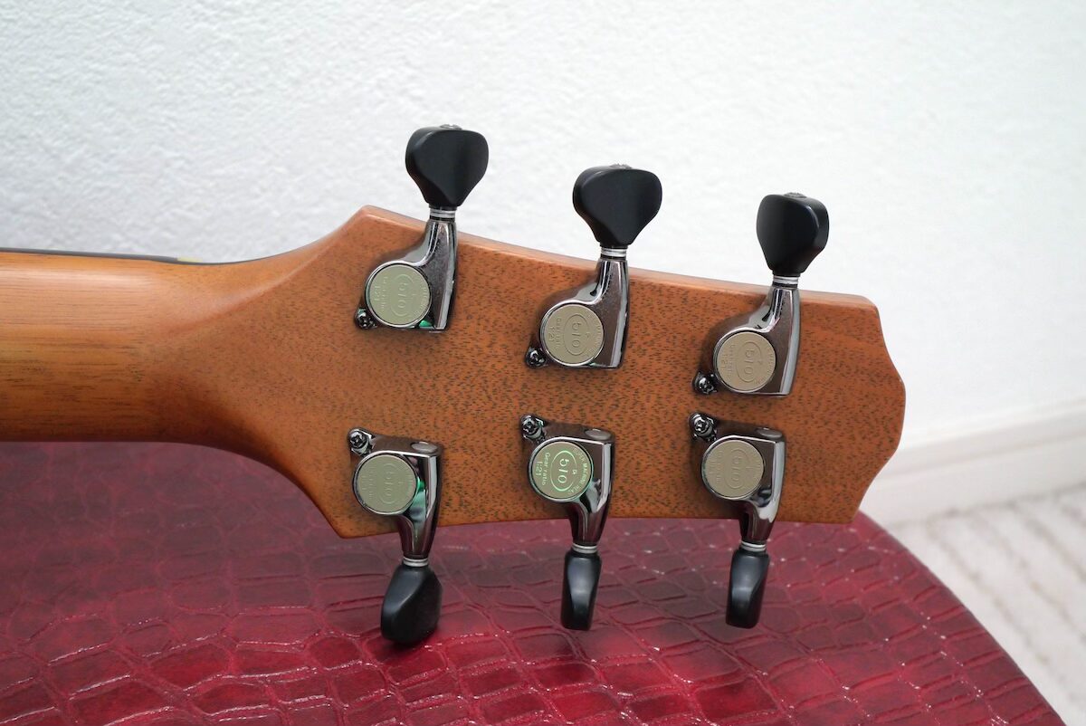 指板&ブリッジ駒にはエボニーを採用し、ネック材は贅沢にもホンジュラスマホガニーのワンピース材です。