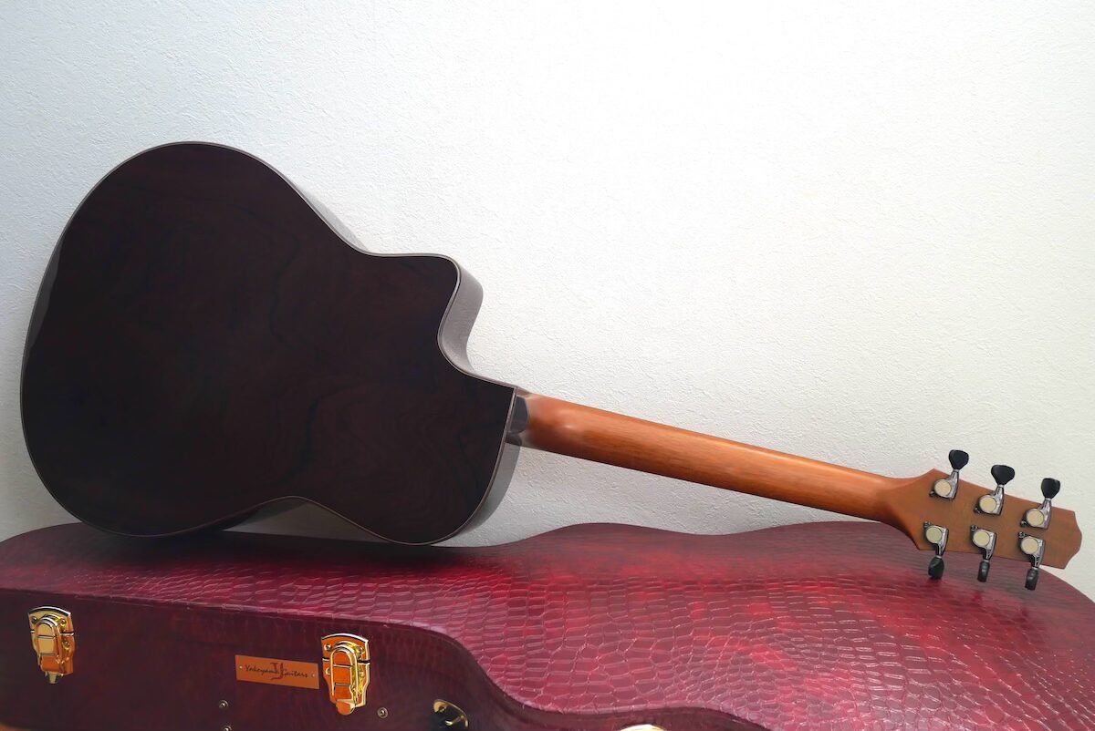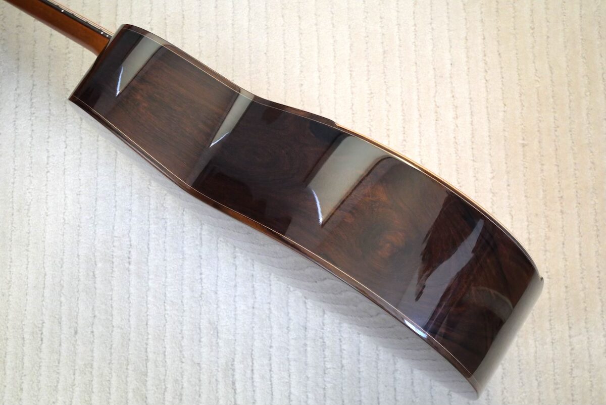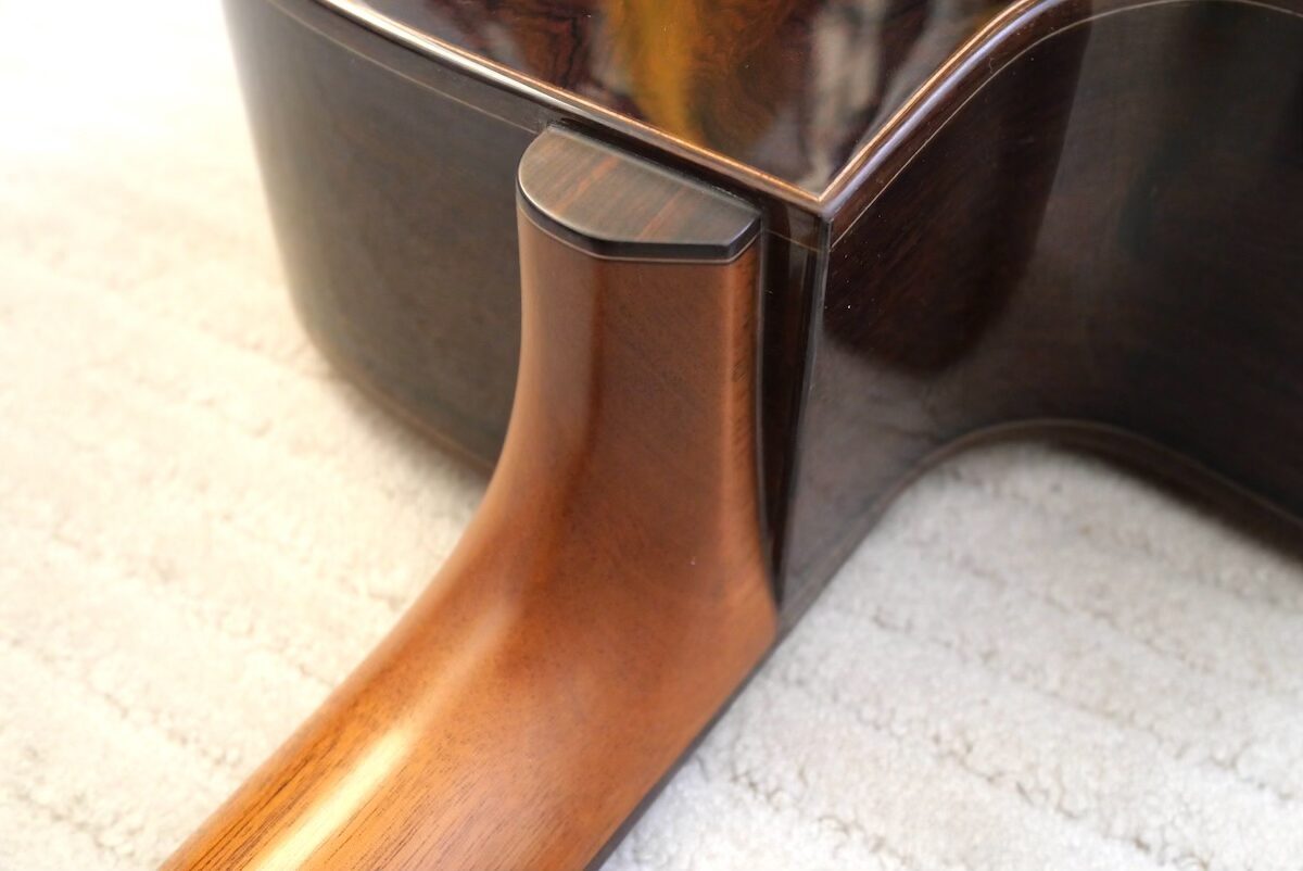 近年ではブラジリアンローズウッド材は入手困難を極めており、材料のグレードに関わらず、手に入らない状況が続いています。こちらの個体に採用の材料は、横山工房にてストックされていた極上材です。