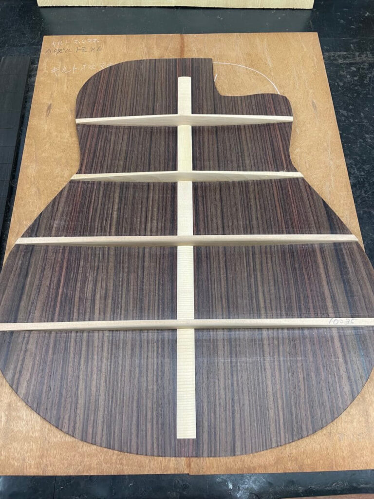 先日、Yokoyama Guitars工房より送られてきた画像の中に、とても興味深いものが。現在製作中の「Anniversary Limited Model」の組み上げ前の画像です。