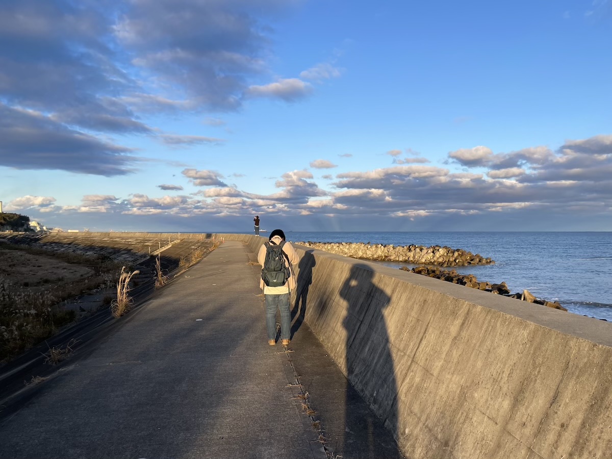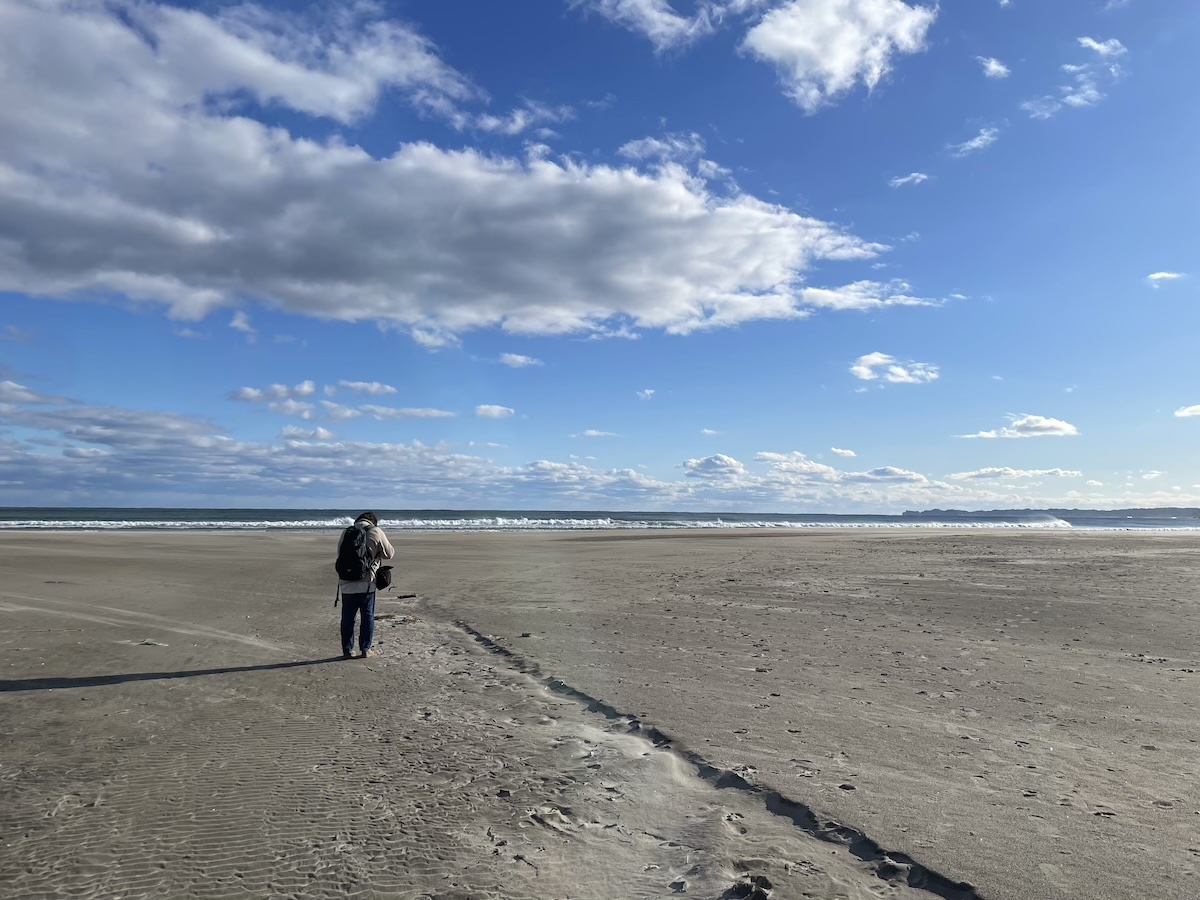 駅前で八木さんの機材を準備し、まずは近くの撮影スポット 四倉(よつくら)海岸へ向かいます。四倉海岸までは約20分です。