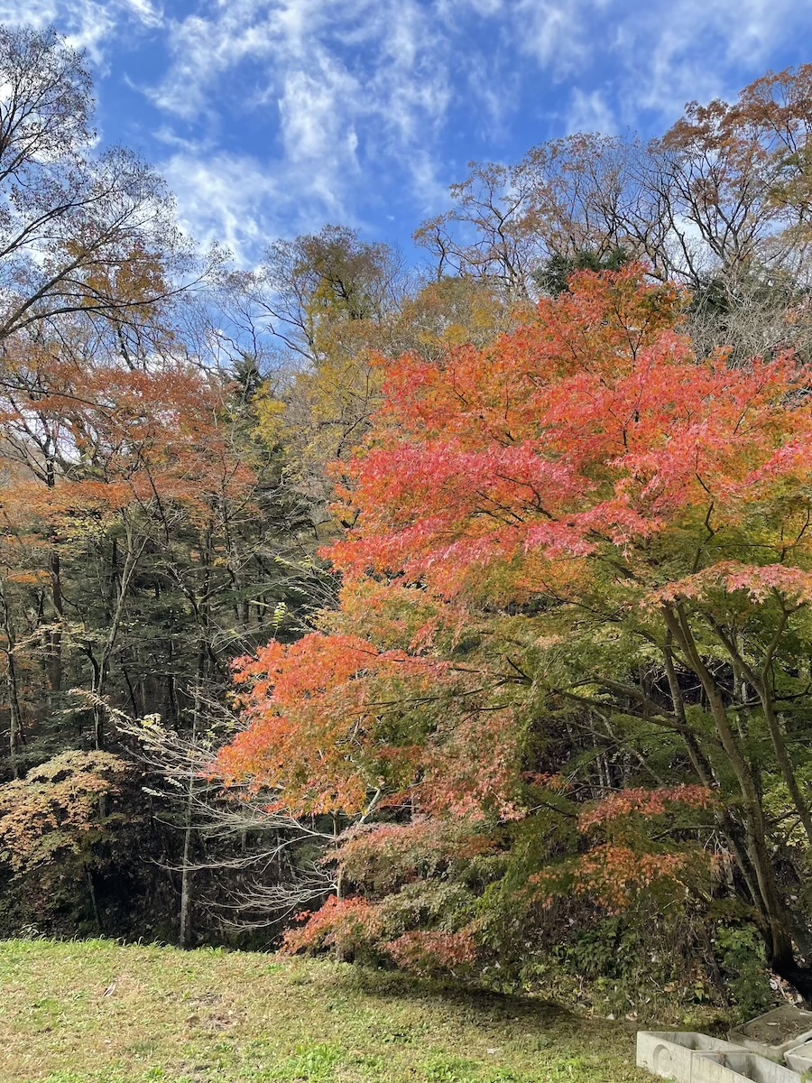 現地までは、車一台がようやく通れるような峠道でしたが、紅葉がとても美しく、最終日にふさわしい景色でした。