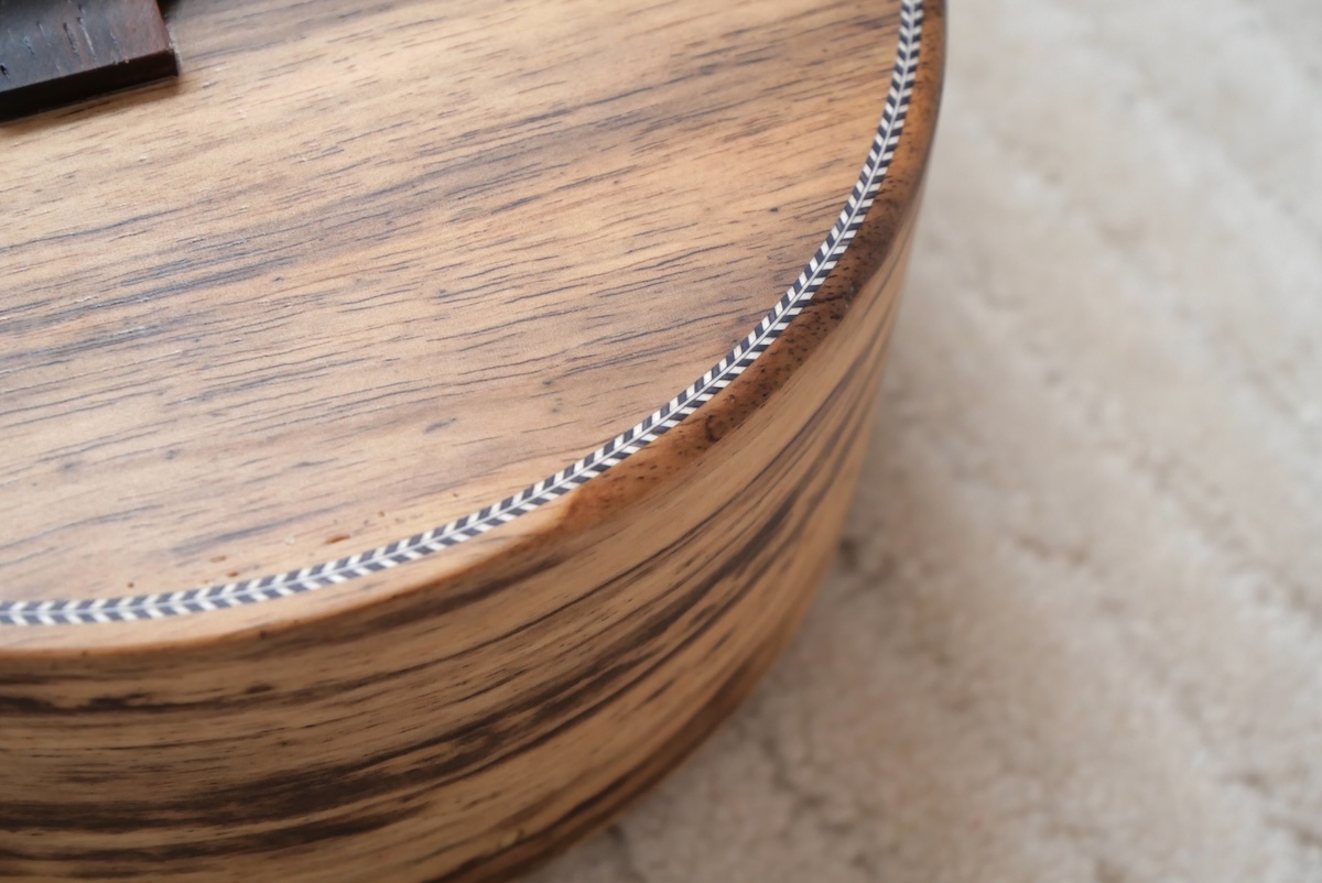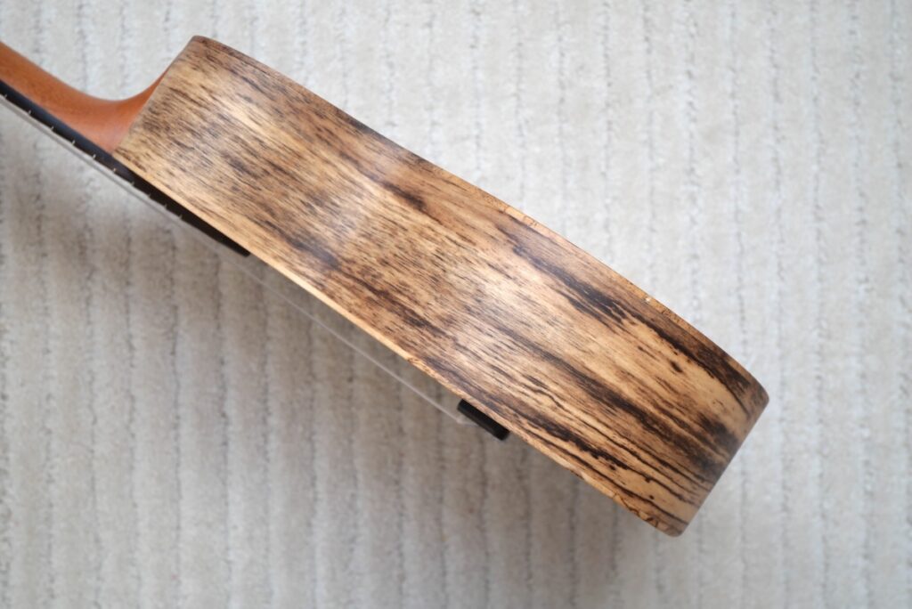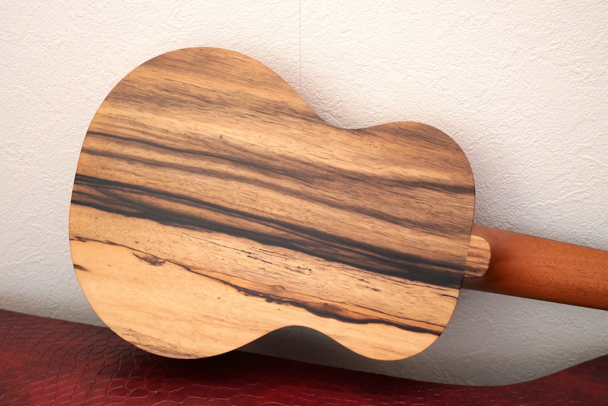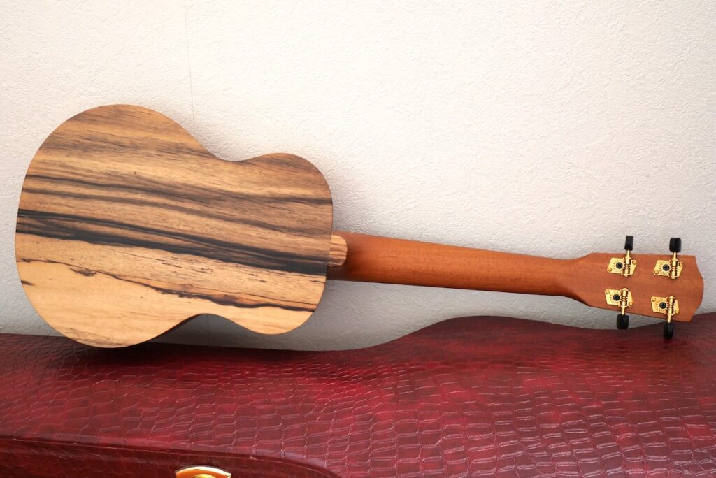 当初はウクレレだと少し硬すぎるかと思いましたが、思っていたより柔らかめな黒柿で、逆にちょうど良い雰囲気の材料でした。