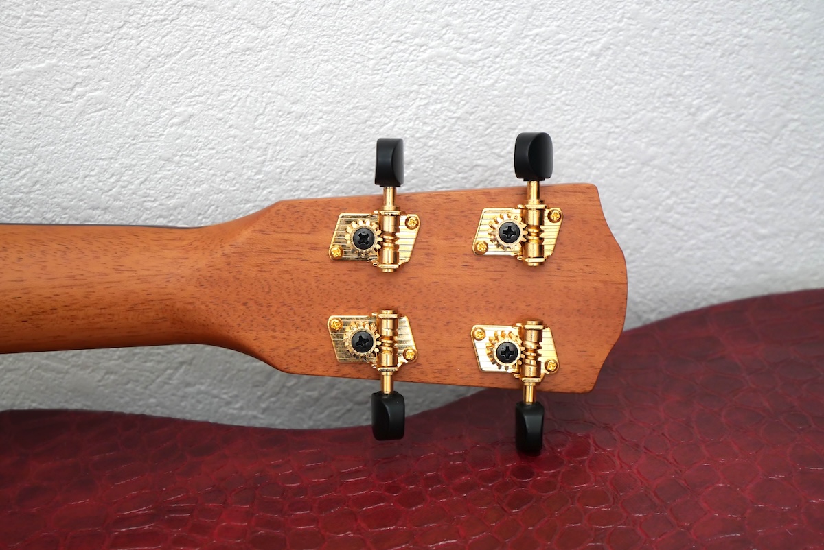 ネックはマホガニー、指板、駒にはローズウッド、ヘッド天神には、ボディ材に合わせて黒柿材を採用した、コンサートウクレレです。
