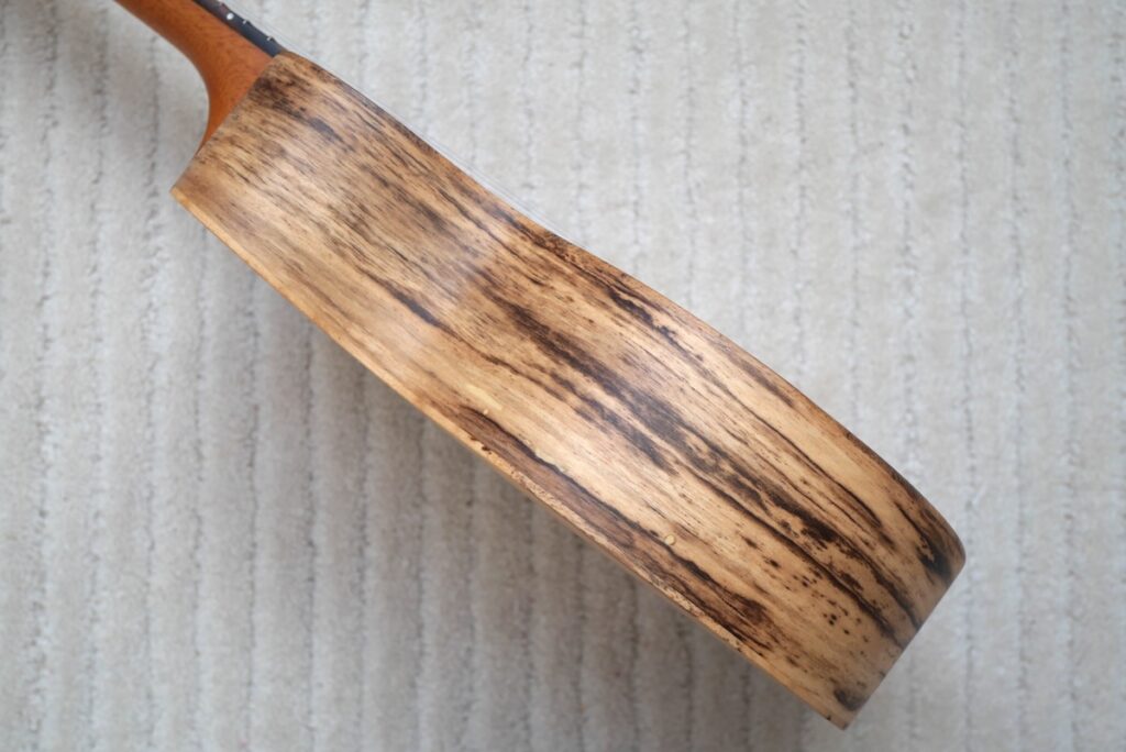黒柿ならではのワイルドな杢目がインパクト絶大です。裏腹にサウンドは柔らかめで、優しい音色です。
