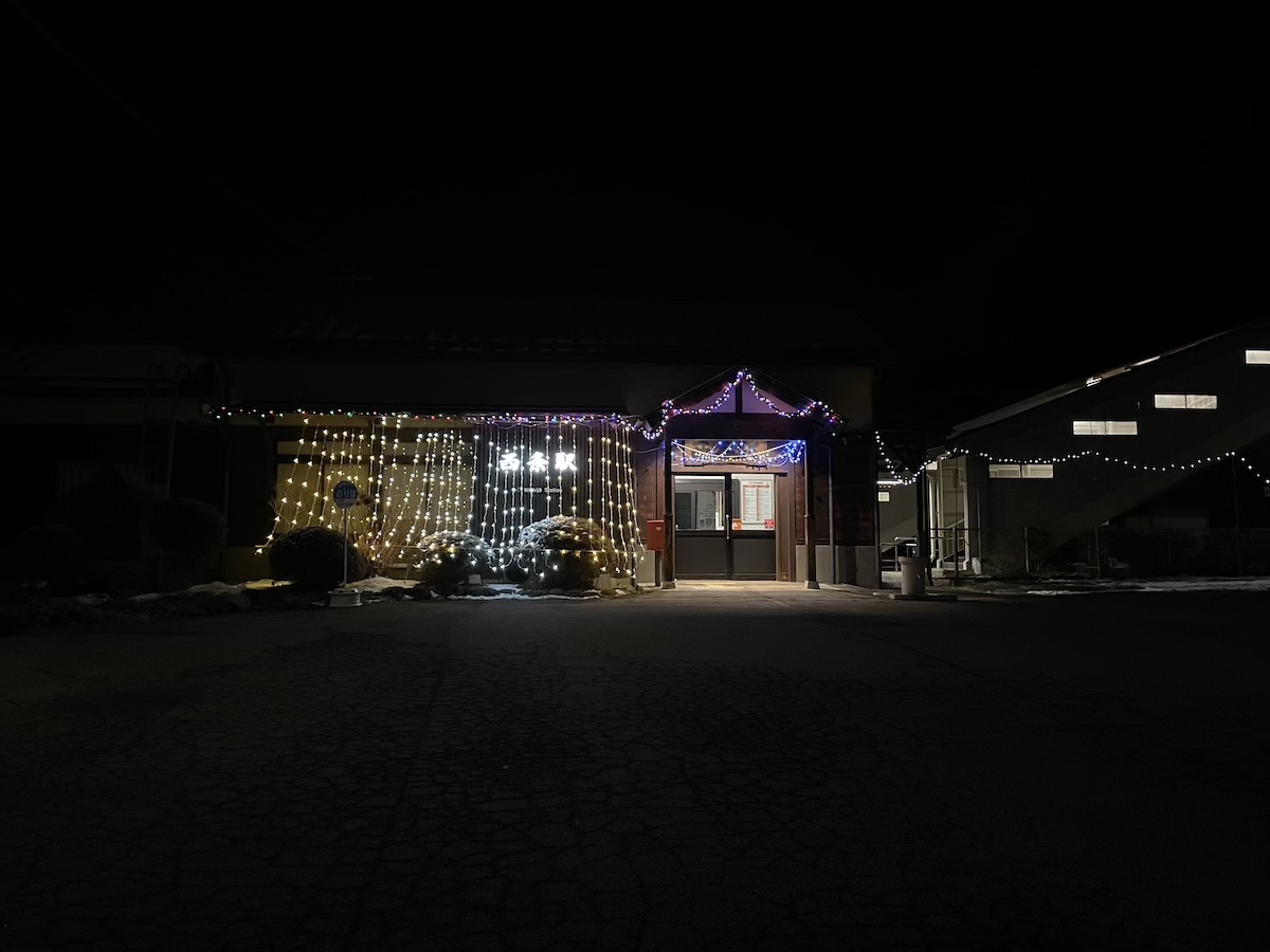 この季節は地元の西条(にしじょう)駅もライトアップされています。これは結構貴重なショットかもしれません。