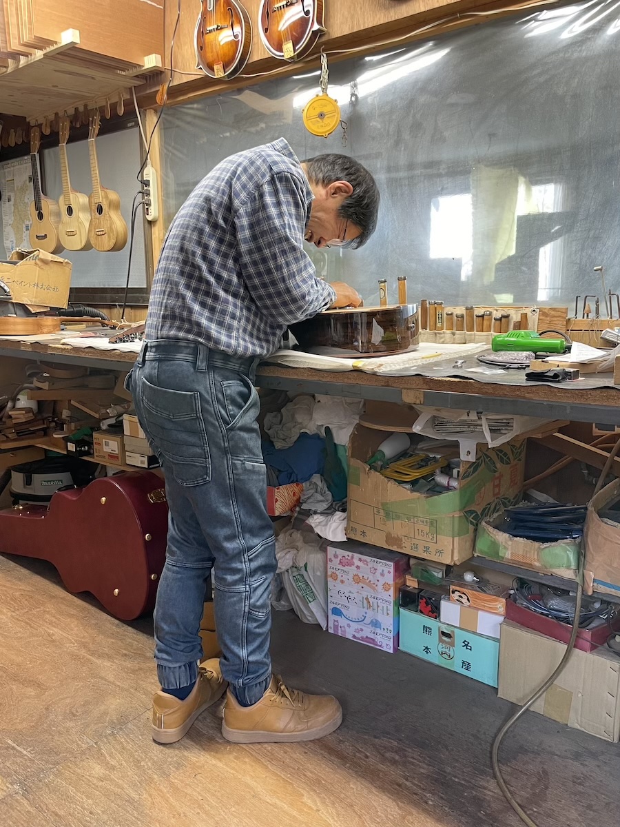早速、お客様調整品や、ピックアップの取り付けなど、TOKYO OFFICEから持ち込んだ楽器の作業をします。