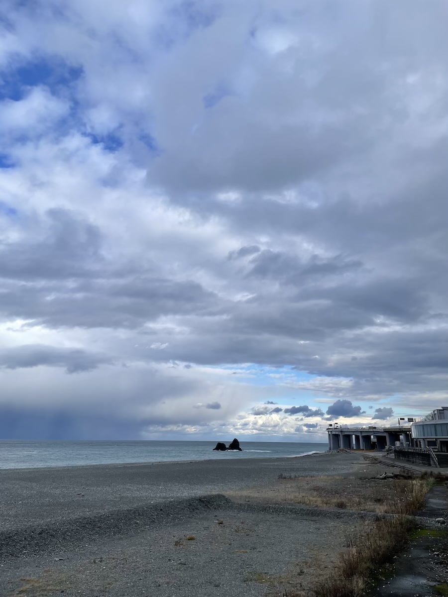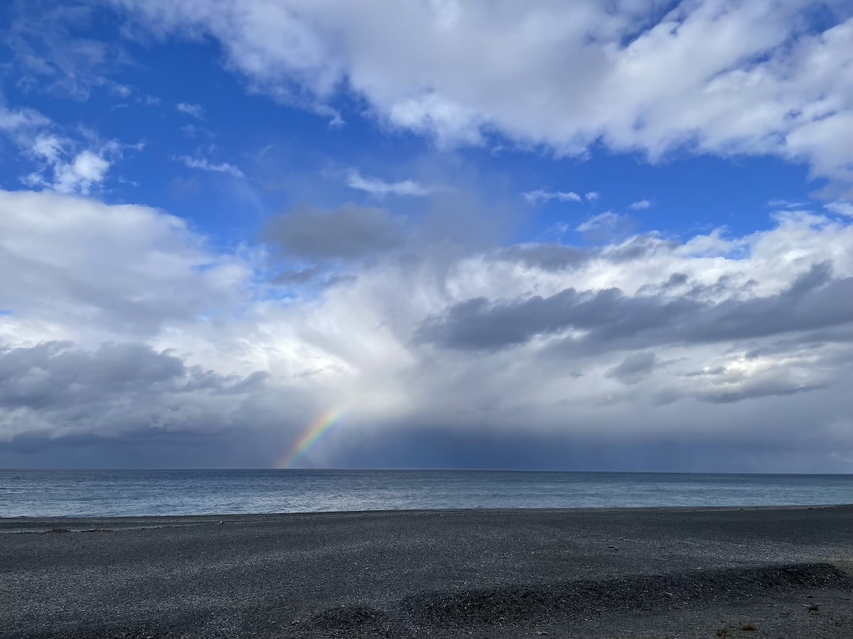 途中、親不知ピアパークで虹が見えましたよ!青空が見えたり、小雨が降ったりと不安定な天気ですが、雪もなくとても暖かい日本海側です。