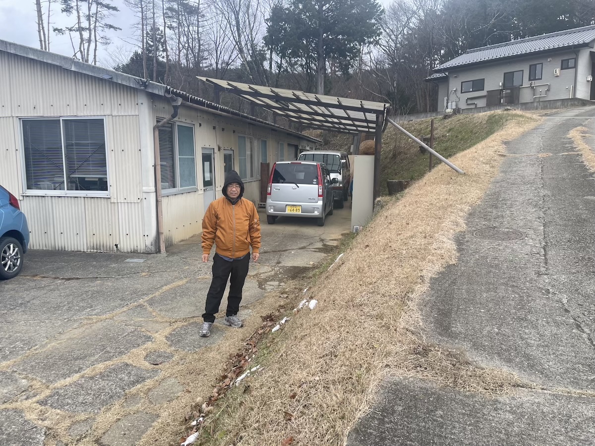 旅行前日にスタッフ全員工房に集合。工房へ到着すると、この時期には珍しく雪が薄ら積もっています。寒さのため、さらさらのパウダースノーです。ようやく冬の到来です。