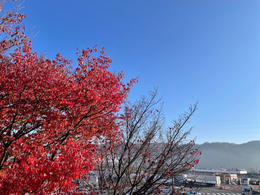 先日、お客様オーダーモデルの材料選定に、日帰りで Yokoyama Guitars 工房へ行ってきました。当日の天気は晴天。紅葉も徐々に始まっており、秋の装い。長野らしい、とても良い雰囲気です。