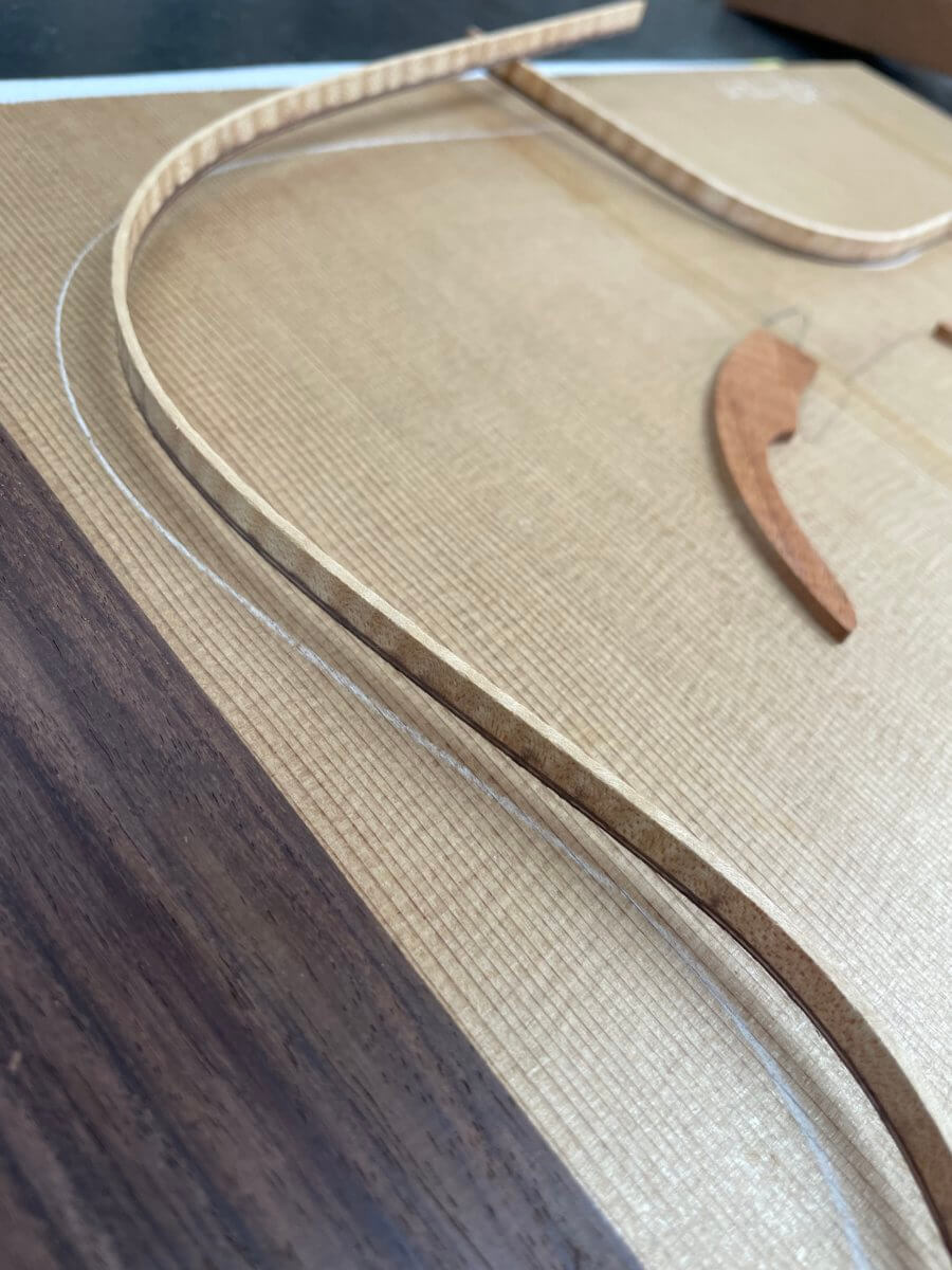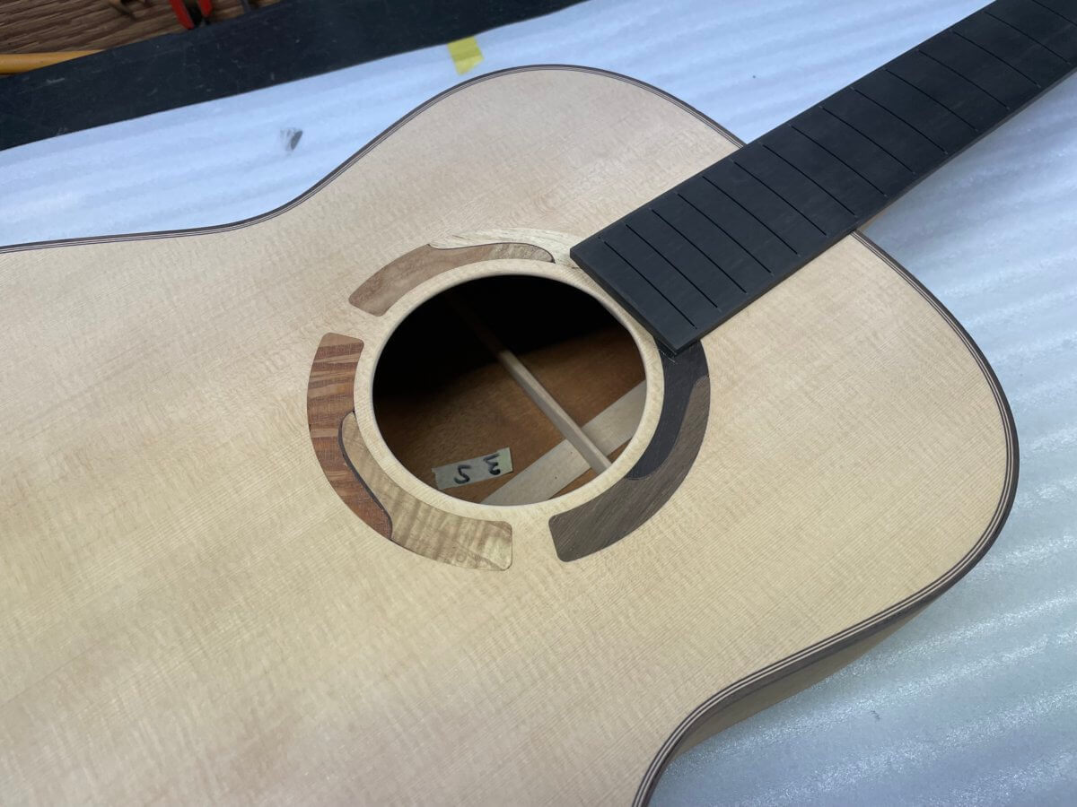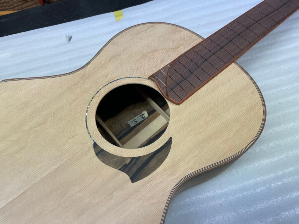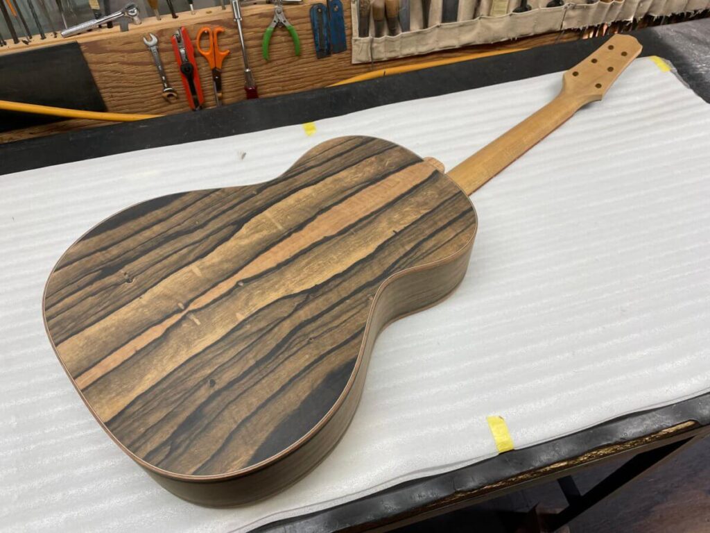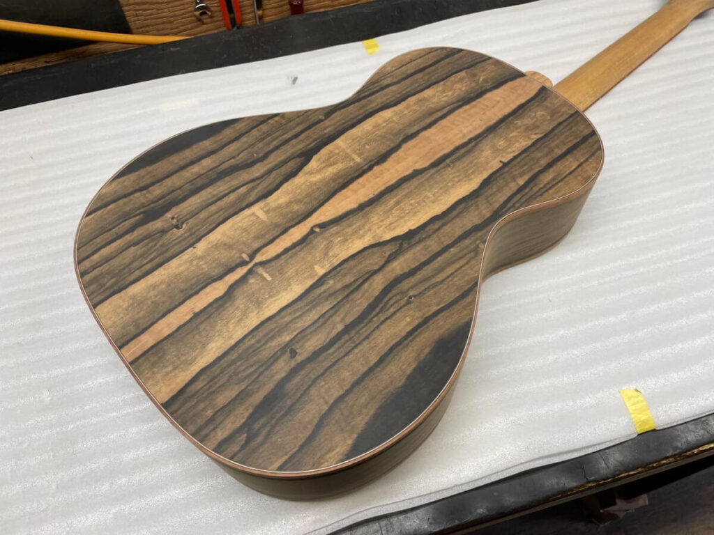 こちらも、まもなくフレット打ちの工程です。完成は年末頃でしょうか。今しばらくお待ちください。