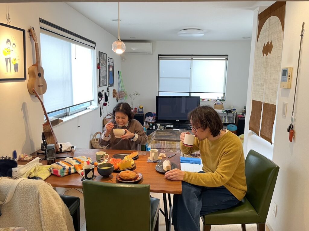 購入してきたパンで、わいわいと昼食タイムです。音楽やウクレレや、全然関係のない話題で盛り上がります。笑