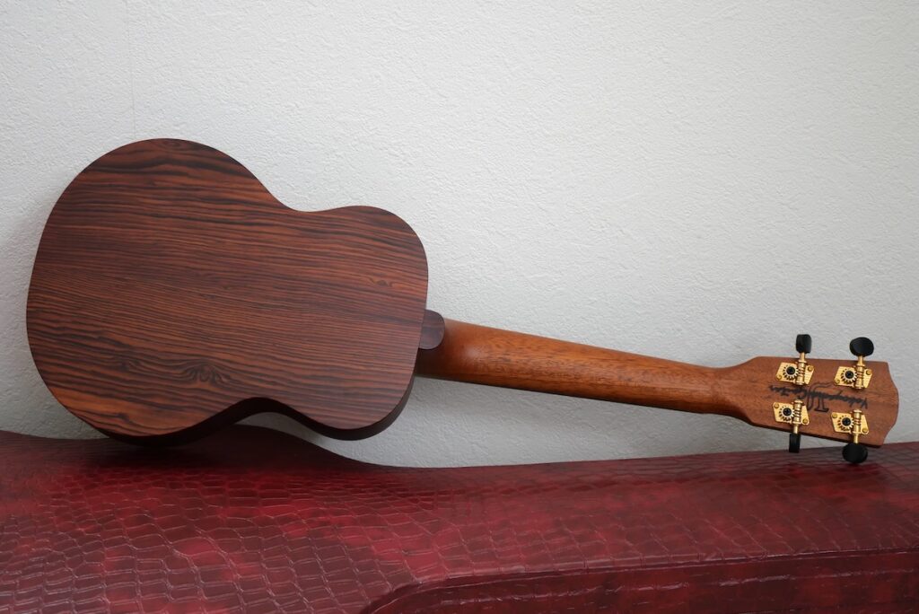 稀少なカマティロ材を採用した、コンサートモデルです。
