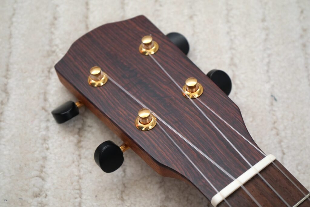 ボディトップにシトカスプルース、バック&サイドには横山氏の代名詞とも言える「カマティロ」を採用しています。ネックはマホガニー、指板、駒にはローズウッド、ヘッド天神にはバック&サイドに合わせてカマティロ材を採用した、コンサートウクレレです。