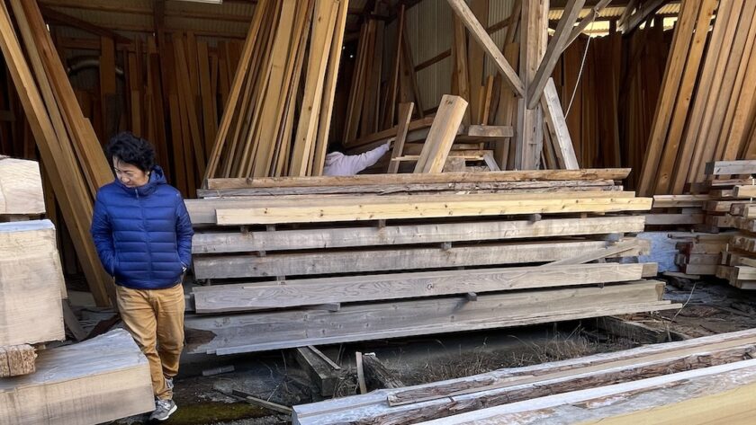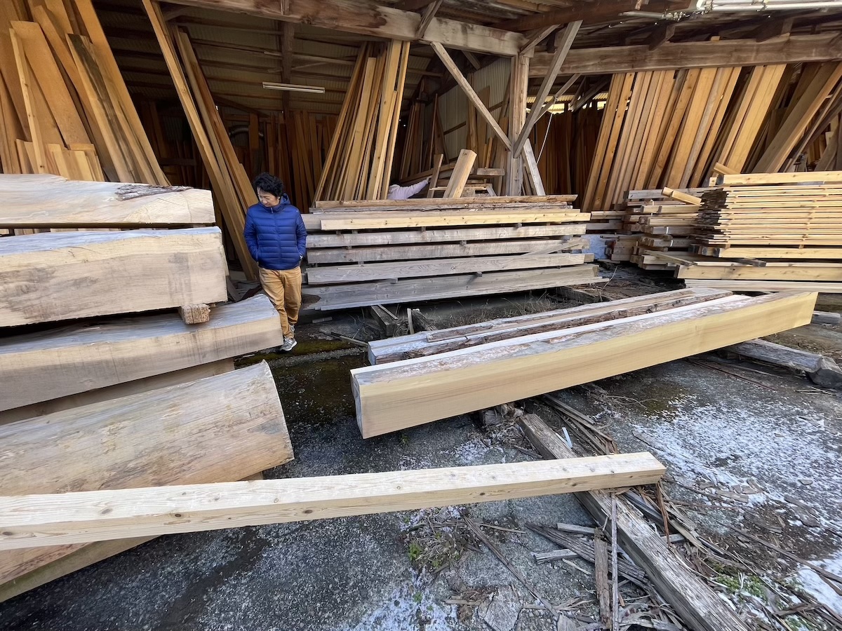 お伺いすると、広大な敷地に所狭しと木材が並べられています。ご紹介いただいたのは、広野町で材木を扱われている坂本さん。この道、うん十年の大ベテランの方です。