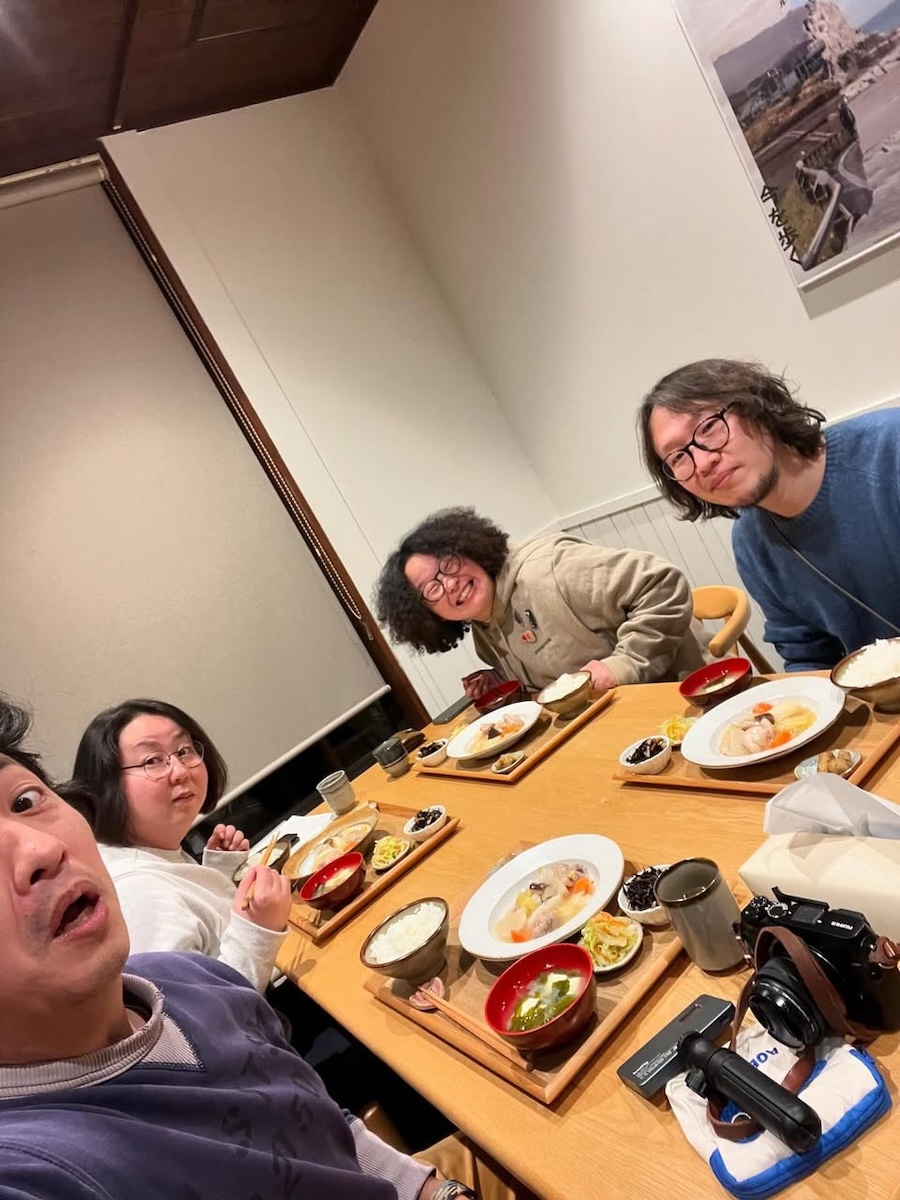 隣町 楢葉の「kashiwaya」さんで美味しい夕食をいただきながら、今日見せていただいた材料の件、今後の展望などを話し合いました。