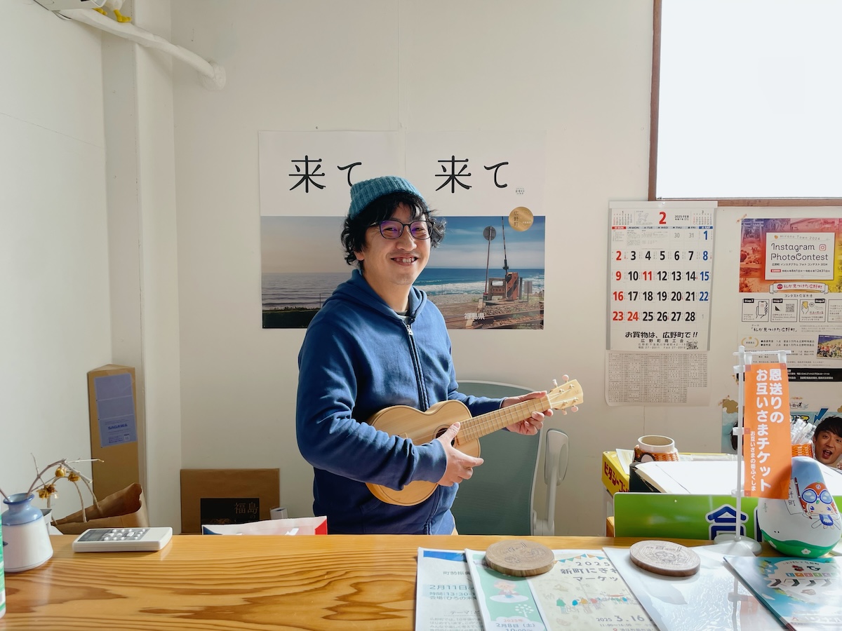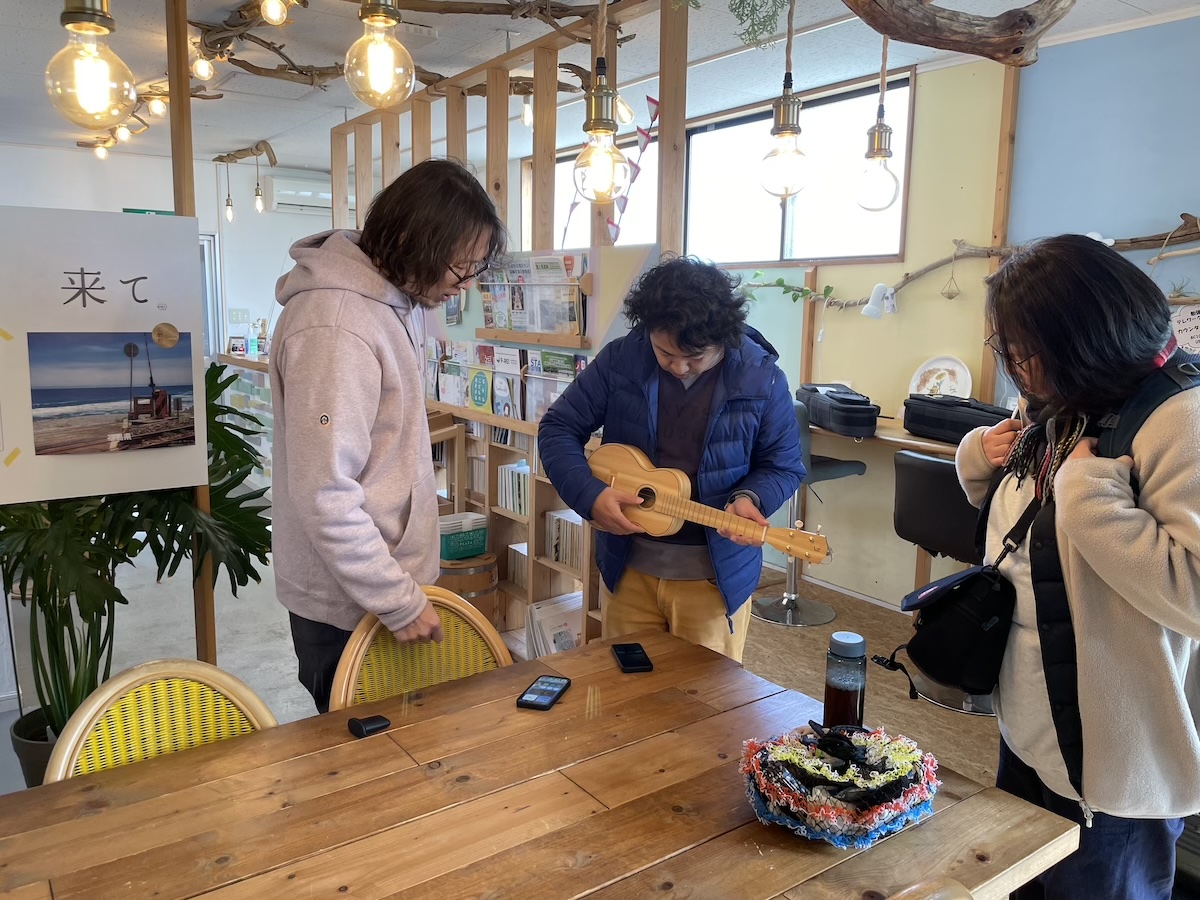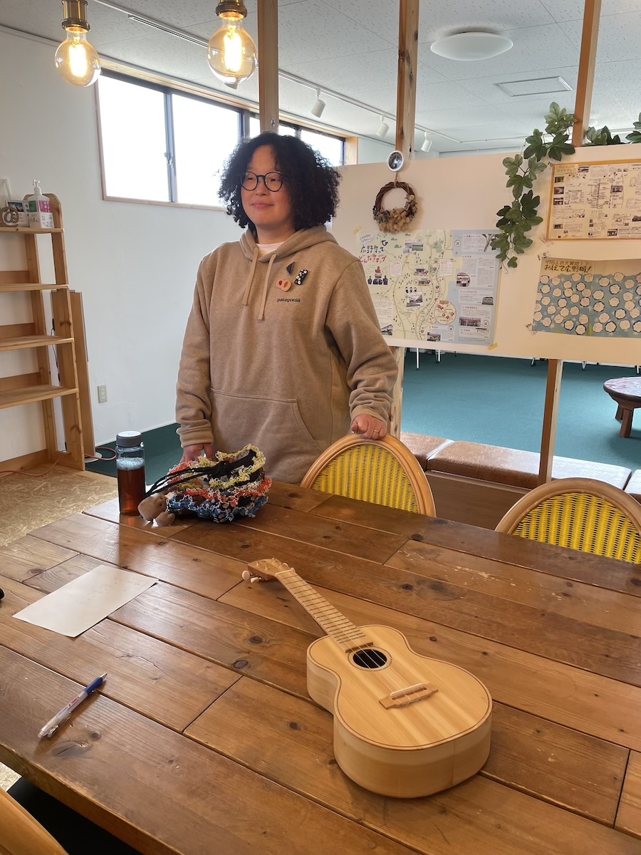 最後に「ぷらっとあっと」に立ち寄り、ウクレレのサンプル品を置かせていただきました。施設をご利用の方は、どなたでもお試しいただけます。