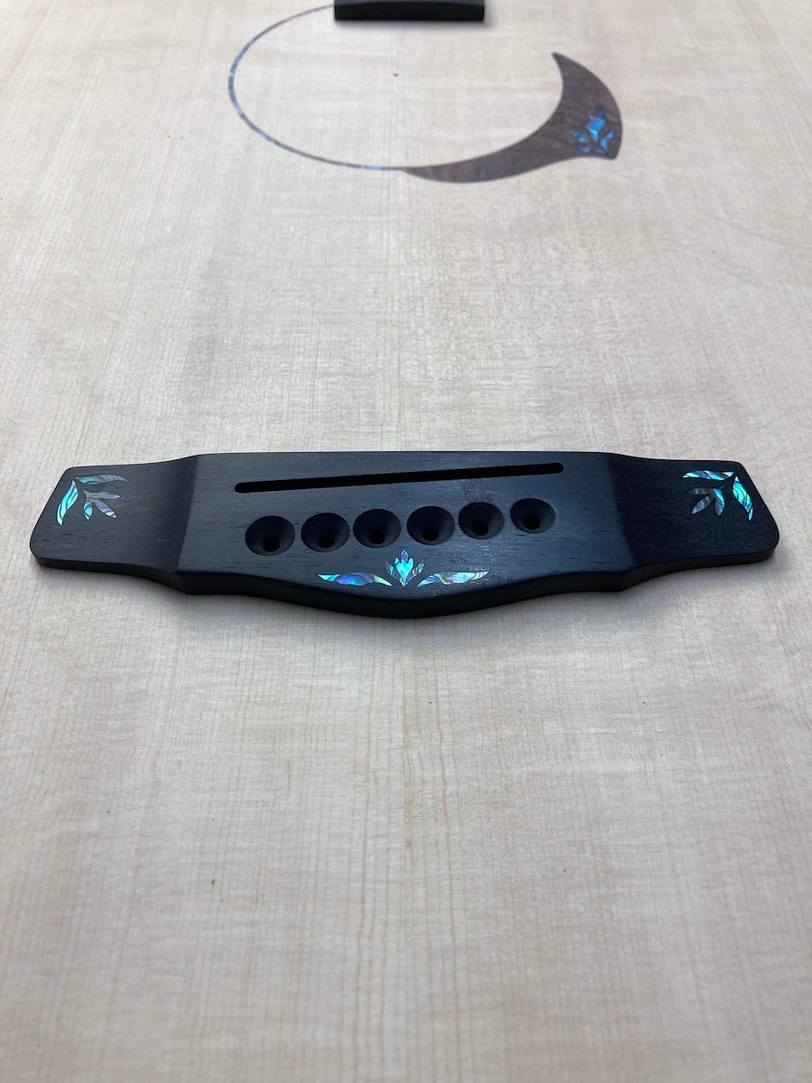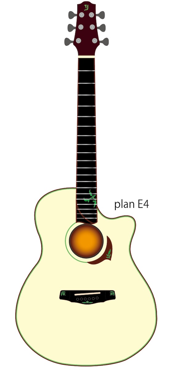 ボディトップにはベアクロウの美しい、ジャーマンスプルース。ヘッド天神にはエキゾチックエボニーを選定しました。