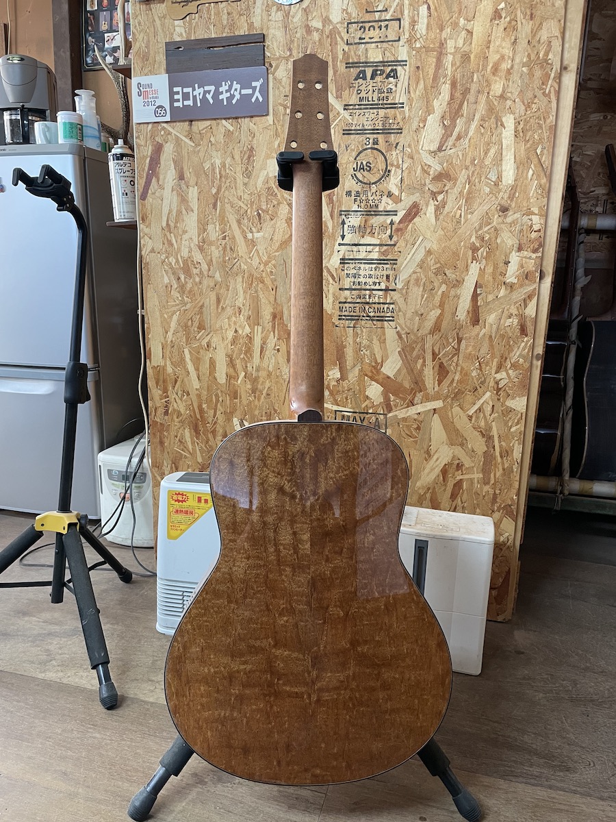 「記念すべき1000本目には、相応しい材料を」と横山氏と相談し、横山氏が密かにストックしていたキルテッド・ホンジュラスマホガニーをバック&サイドに採用することにしました。