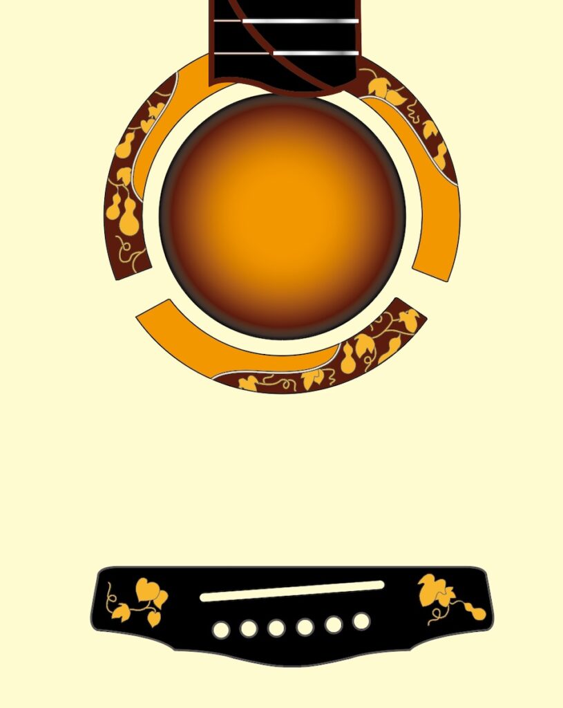 「シリアル #1000 / AN-GHQ」は、和のテイストを取り入れ「千成瓢箪」をモチーフにして、透かし彫りのような配置に。ロゼッタの材料にはバック&サイドに採用されている、キルテッド・ホンジュラスマホガニーの一部(とも材)を埋め込んでいただけるようです。