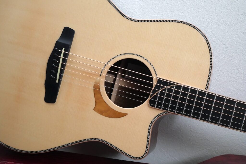 イングルマンスプルースならではの音のクリアさに、オバンコールの程よい重厚感がミックスされた、バランスの良い一本です。Yokoyama Guitarsならではのトーンを持ったギターだと思います。