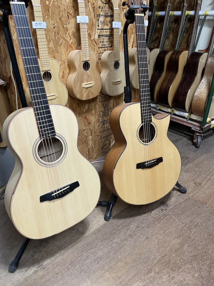 おおよそのシェイプは決まっているものの、選べる材料の多さに驚いていらっしゃいました。さて、どの材料がお好みのサウンドでしょう。TOKYO OFFICEからも、数本リクエストいただいた楽器を持参してきました。
