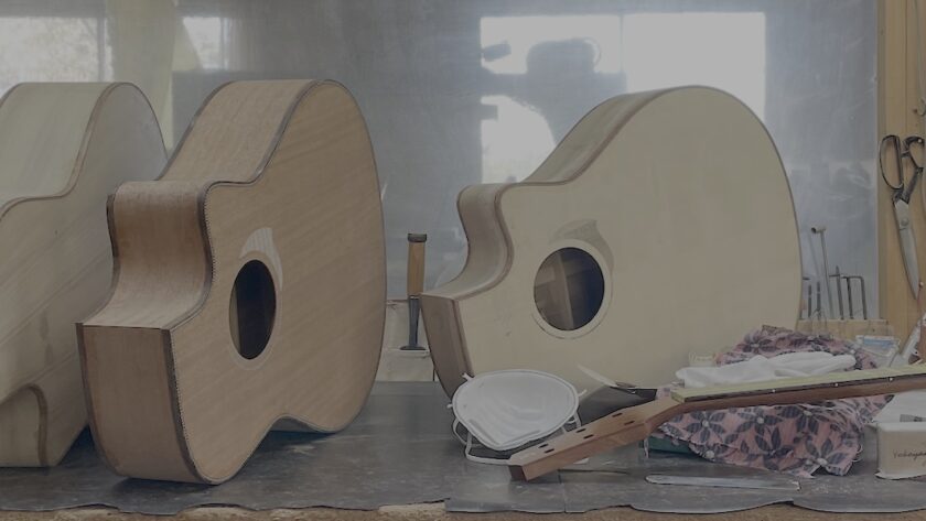 工房内では、今度のハンドクラフトギターフェス展示モデルを製作中です。