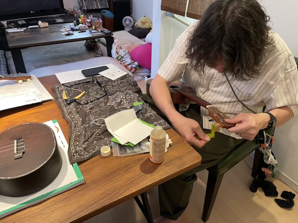 東京ではT様にご来場いただき…(レッスンだけでなく、楽器の調整、弦交換等も行っております。)