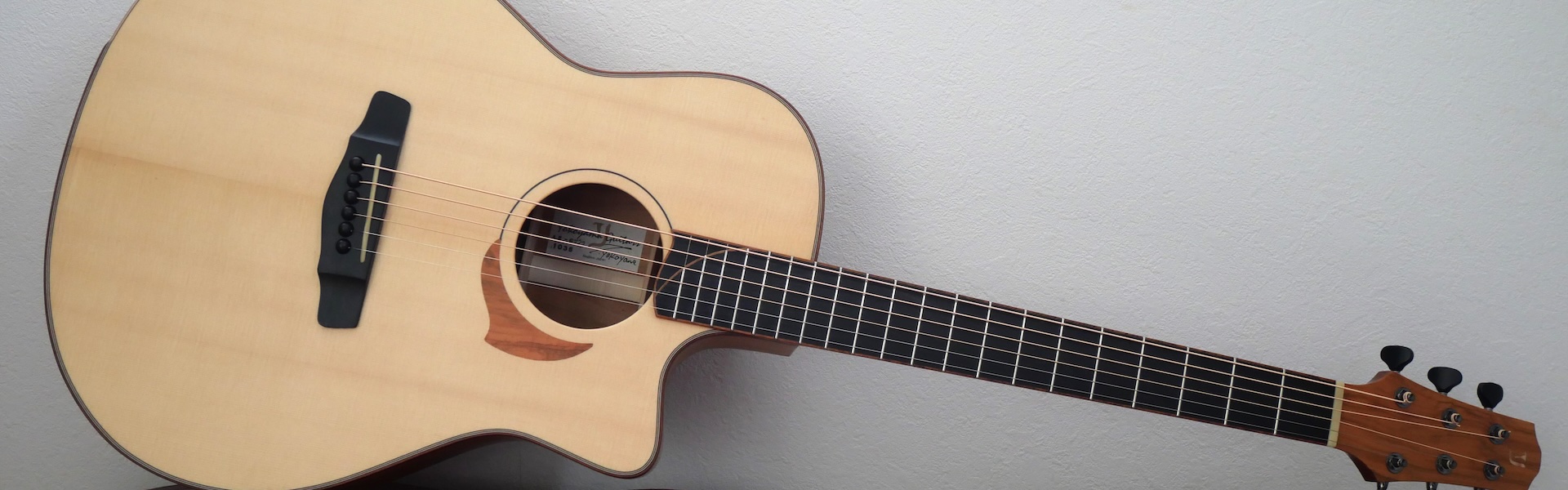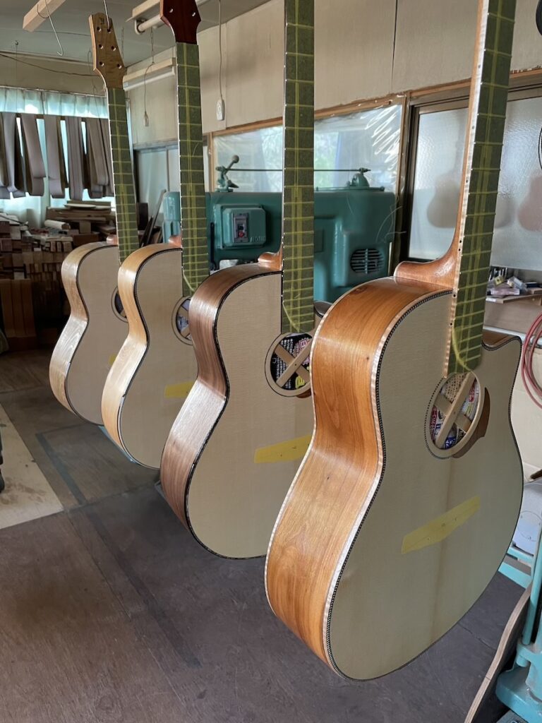 イチオシの和材モデルがズラリと並びます。今回は、全てARシェイプでの製作です。最近はニューヨーカースタイルや、ノンカッタウェイモデルも多かったので、とても新鮮です。