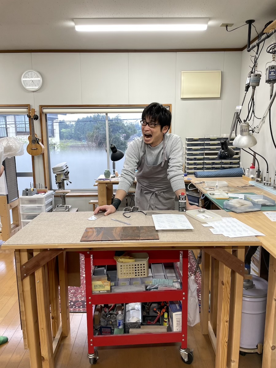 TOKYO OFFICE組は長野入りする前に、新潟県のオガワインレイクラフトさんへ立ち寄りました。完成したインレイ品の受け取りです。