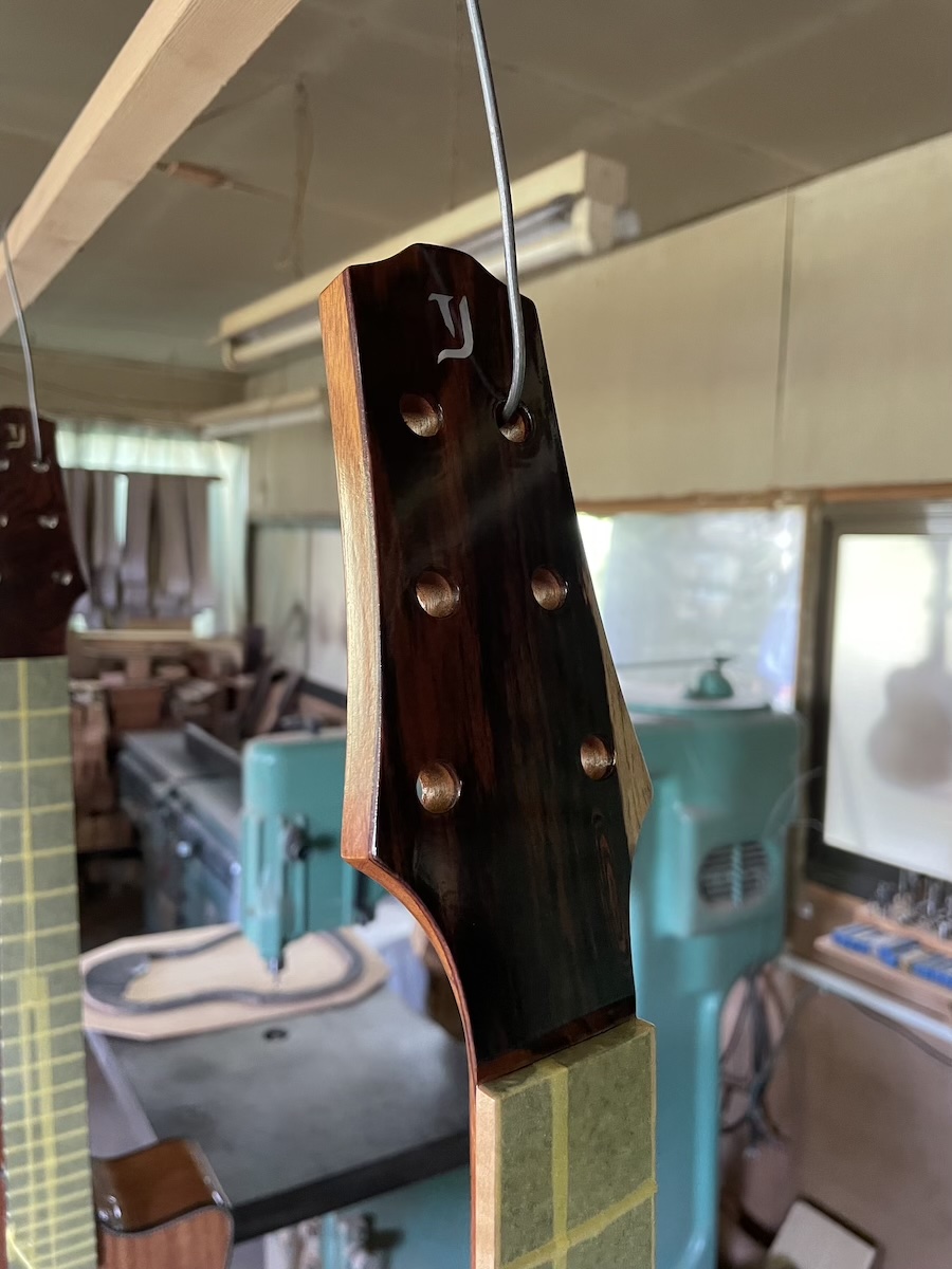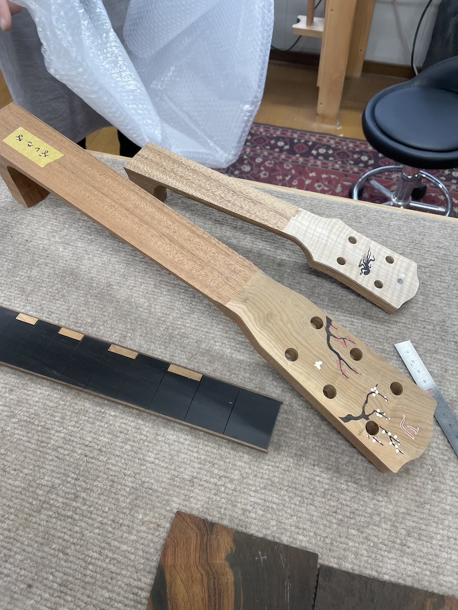 小川さんに依頼したカスタムインレイも入って、素敵なギターに仕上がりそうです。