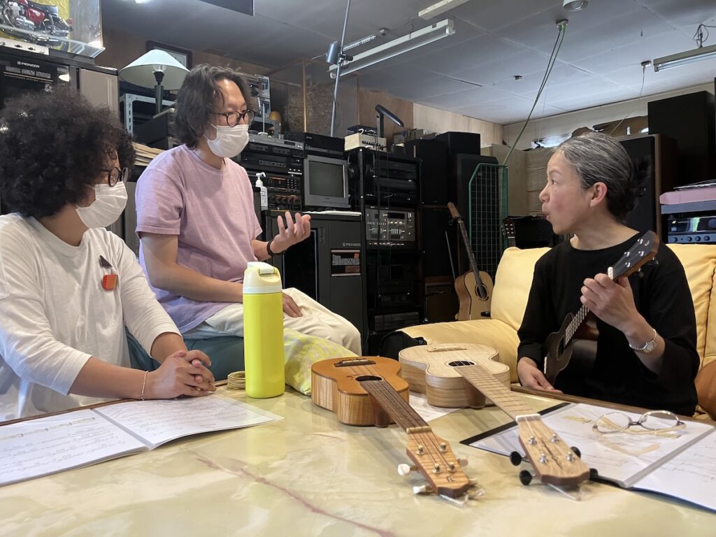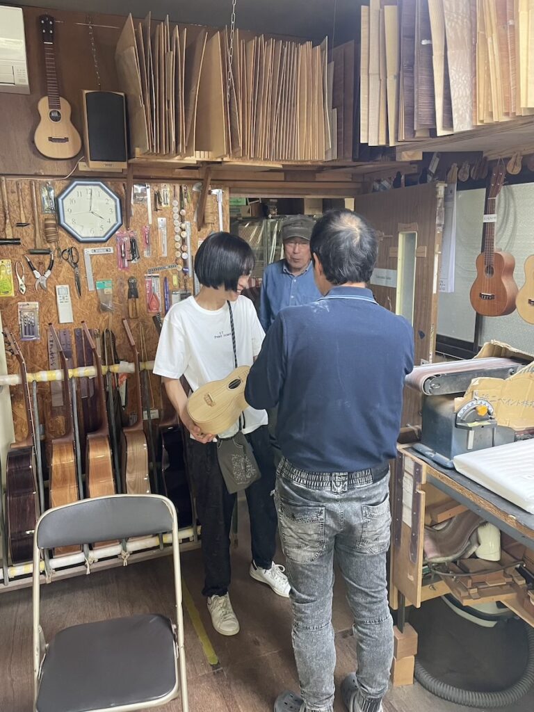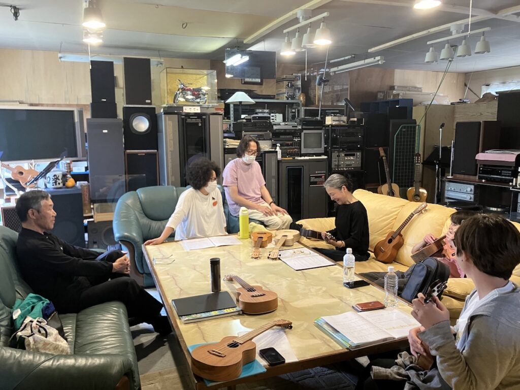 練習の合間に、色々なウクレレを試してもらったり、ウクレレサイズの話などで盛り上がりました。
