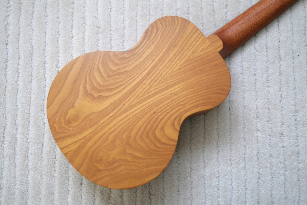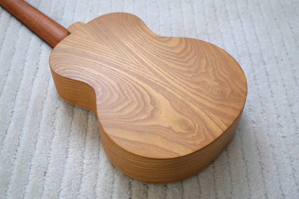 工房脇に自生していた「桑の木」を伐採した材料で製作したウクレレです。今回は、工房にストックしていた1本を販売させていただきます。