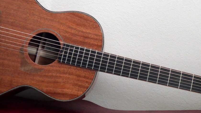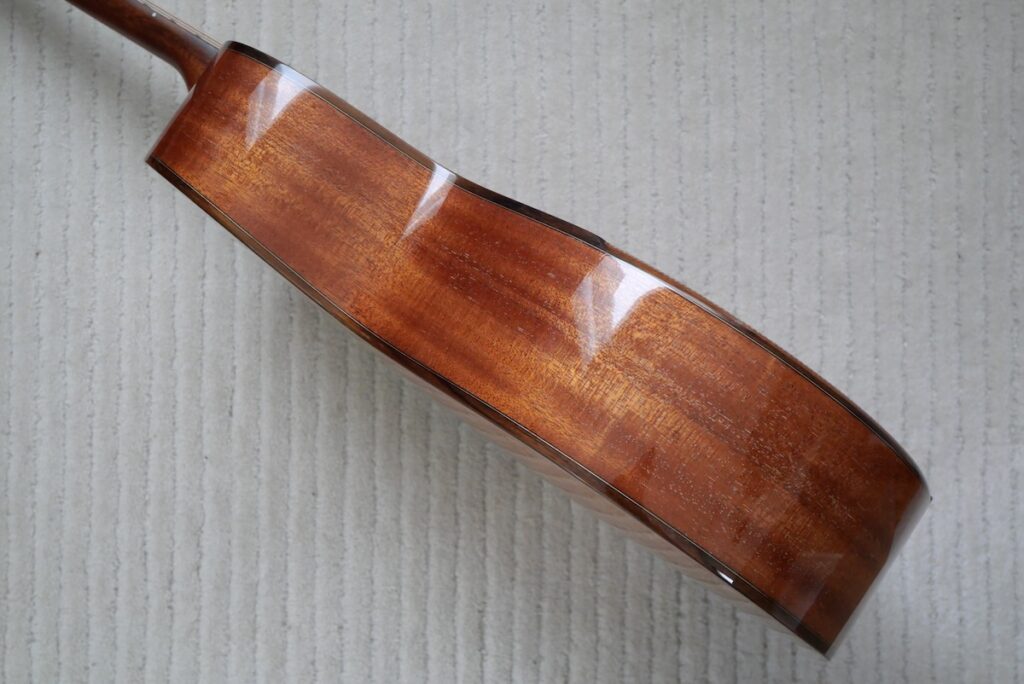 この仕様ならではの、柔らかで、ふくよかなサウンドは、ぜひ体感していただきたいと思います。コンパクトボディならではの、素晴らしい抱え心地です。