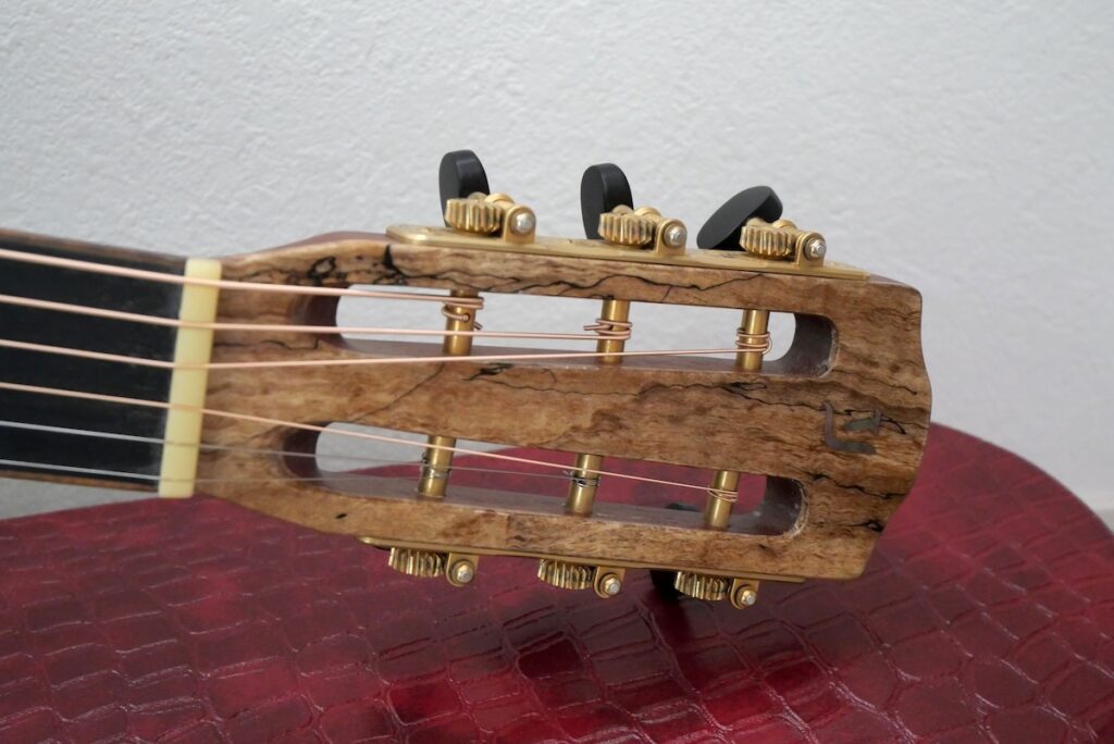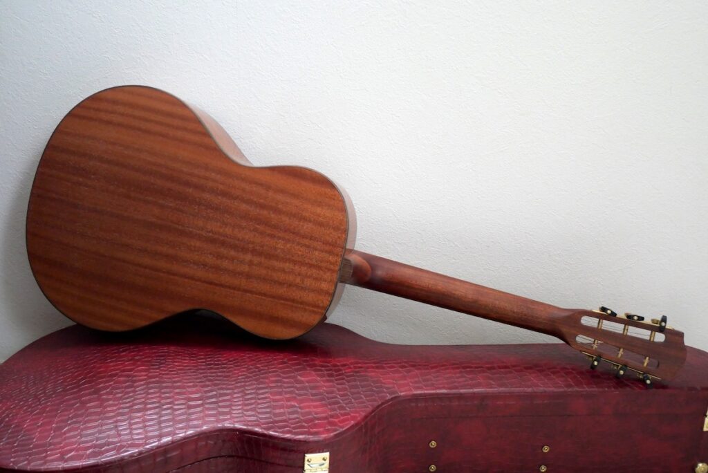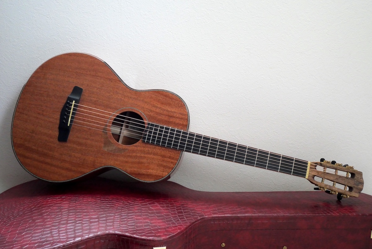 今回製作したモデルは、オールマホガニーボディ、スローテッドヘッドを採用し、その手の愛好家の方達にはビビッとくる仕様となっています。