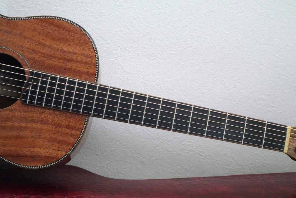 トリプルオーは14Fジョイントのミディアムスケールをイメージされる方が多いのですが、12Fジョイントのロングスケールがオリジナル。本家のマーチンでも生産数が少ないモデルです。
