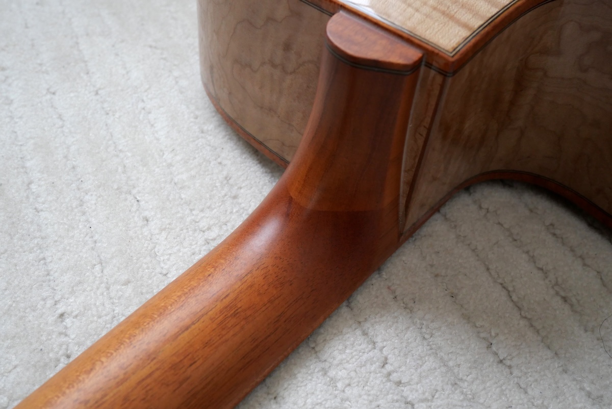 今回ネックには、先日アイチ木材加工さんで入手した、極上のフィジーマホガニーを採用しております。見るからに素晴らしい材料ですが、ぜひサウンドも体感してください。