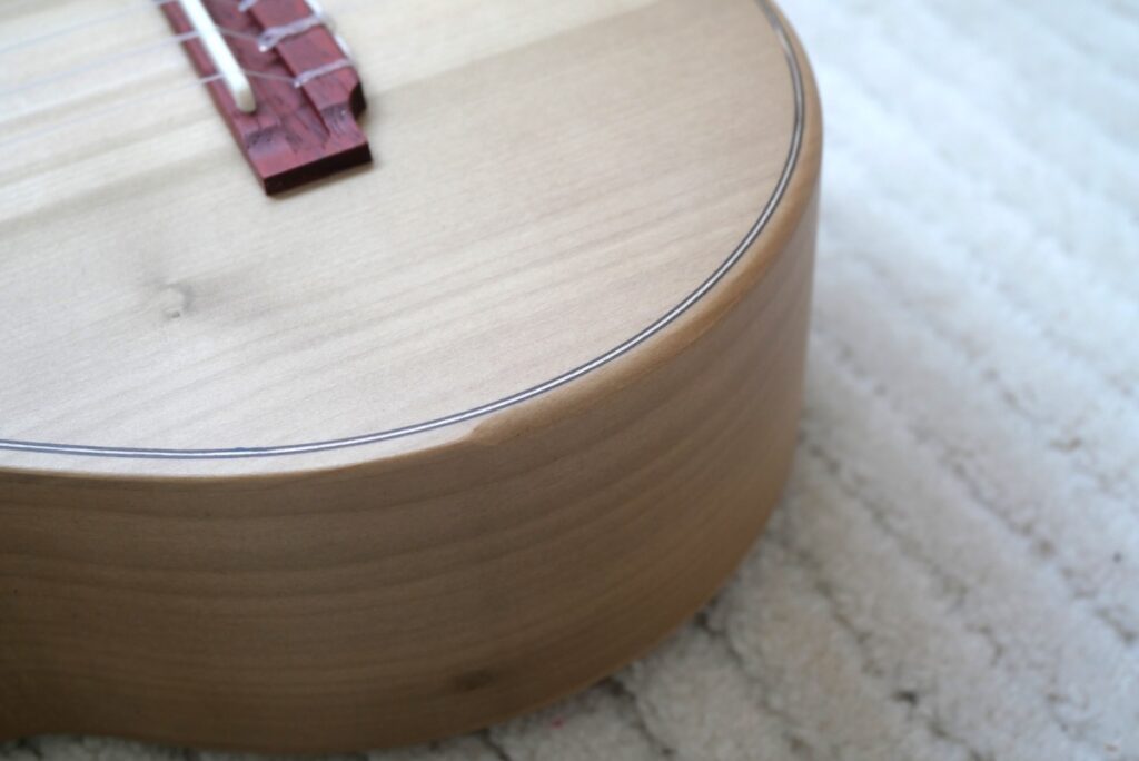 和材としては、比較的硬質な朴材ならではのタイトなサウンドは、弾き込むごとにボリュームが出てくる事でしょう。レスポンスも良く、とても人気のある材料です。