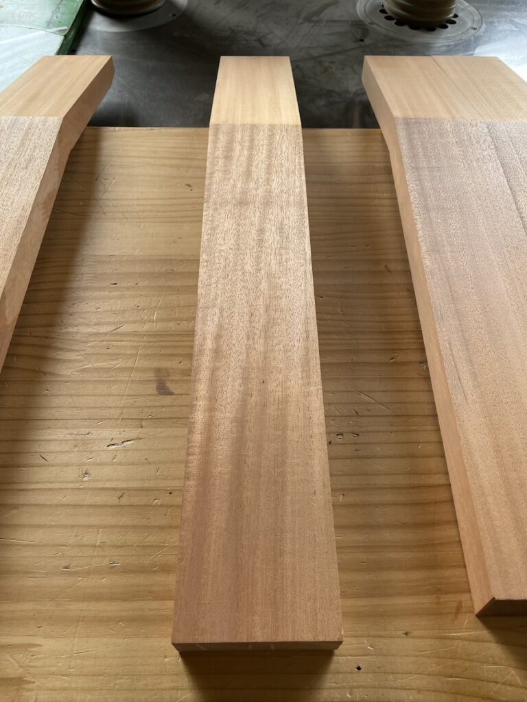 現在、工房で製作しているレギュラーモデルには、厳選したアフリカンマホガニーネック(2P)を中心に採用しております。