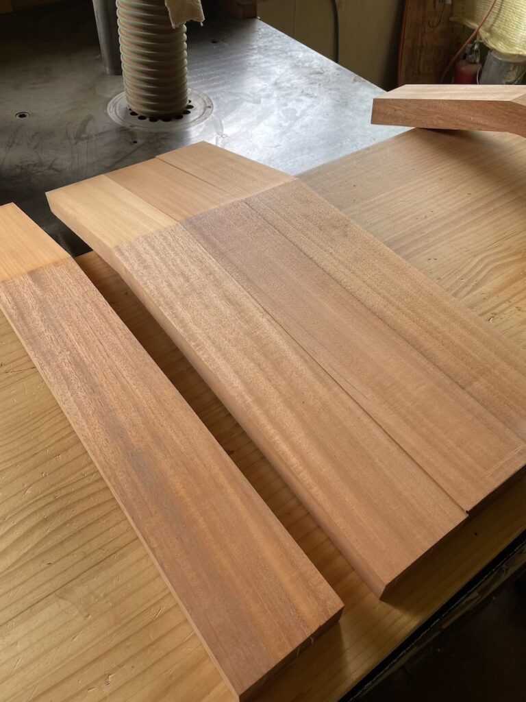 パッと見たところ、最初はホンジュラスマホガニーかと思いましたが、実は「フィジーマホガニー」との事。