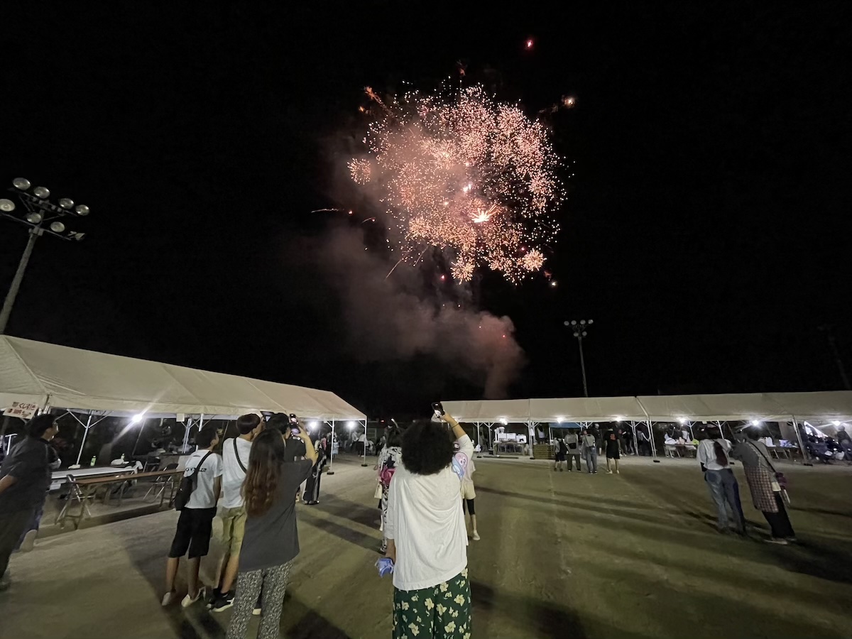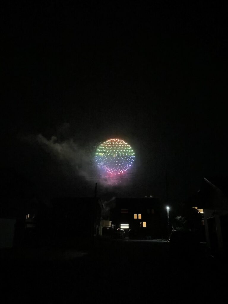 この日の夜は、素晴らしいタイミングで筑北村の夏まつり。F様を引き連れて、花火を見に行ってきました。とてもきれいな花火を堪能いただきました。