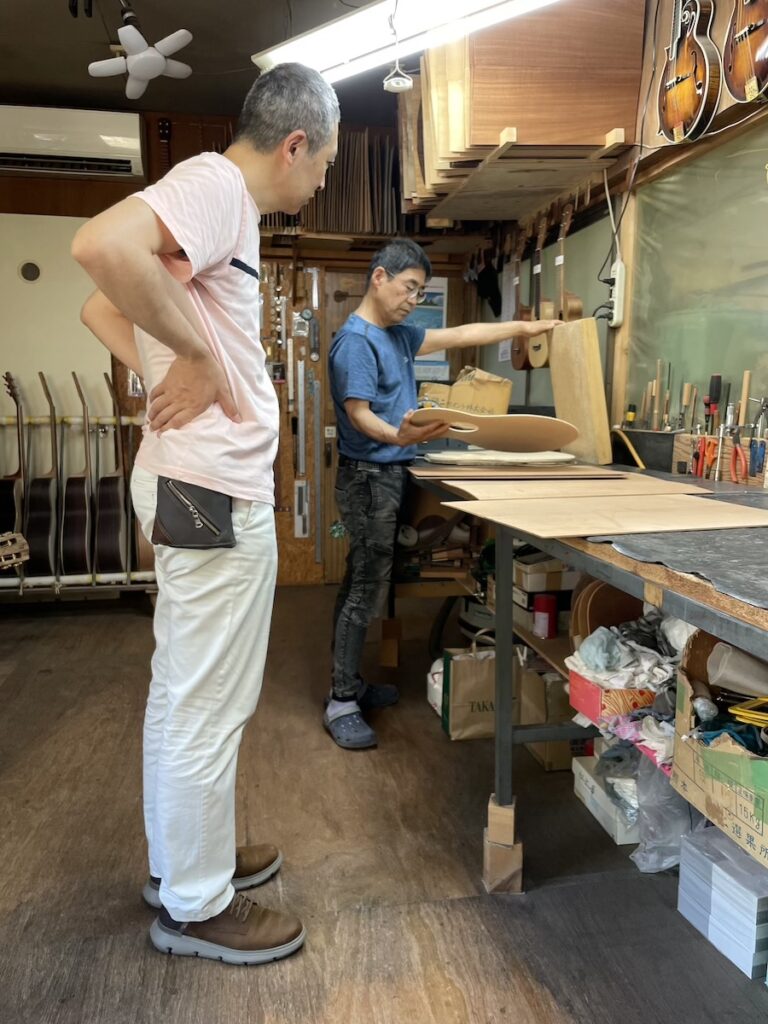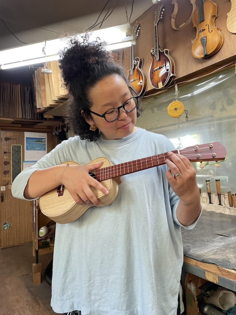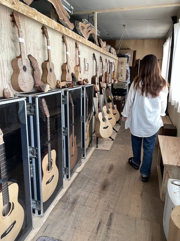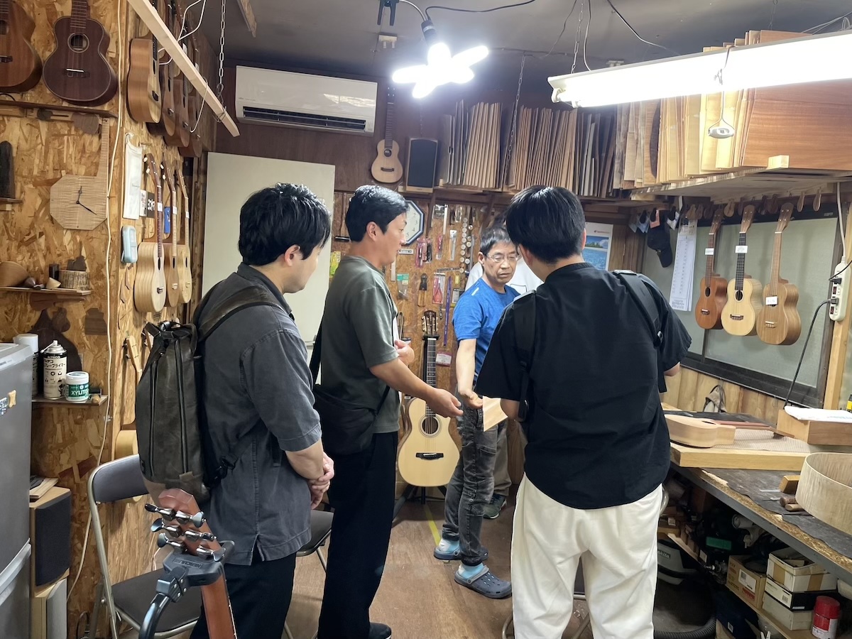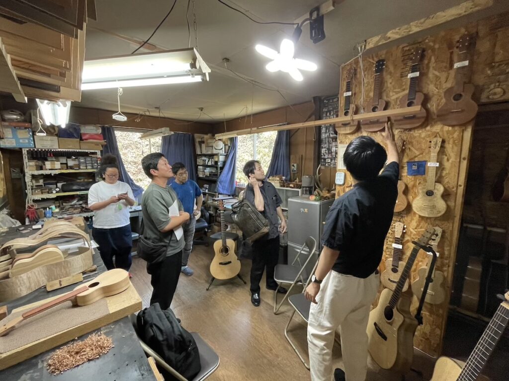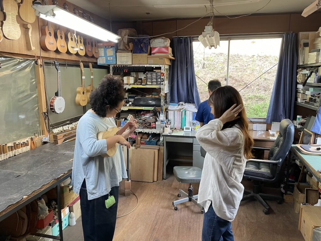 ウクレレを気にされており、特別に実際に製作している工房を見学していただきました。