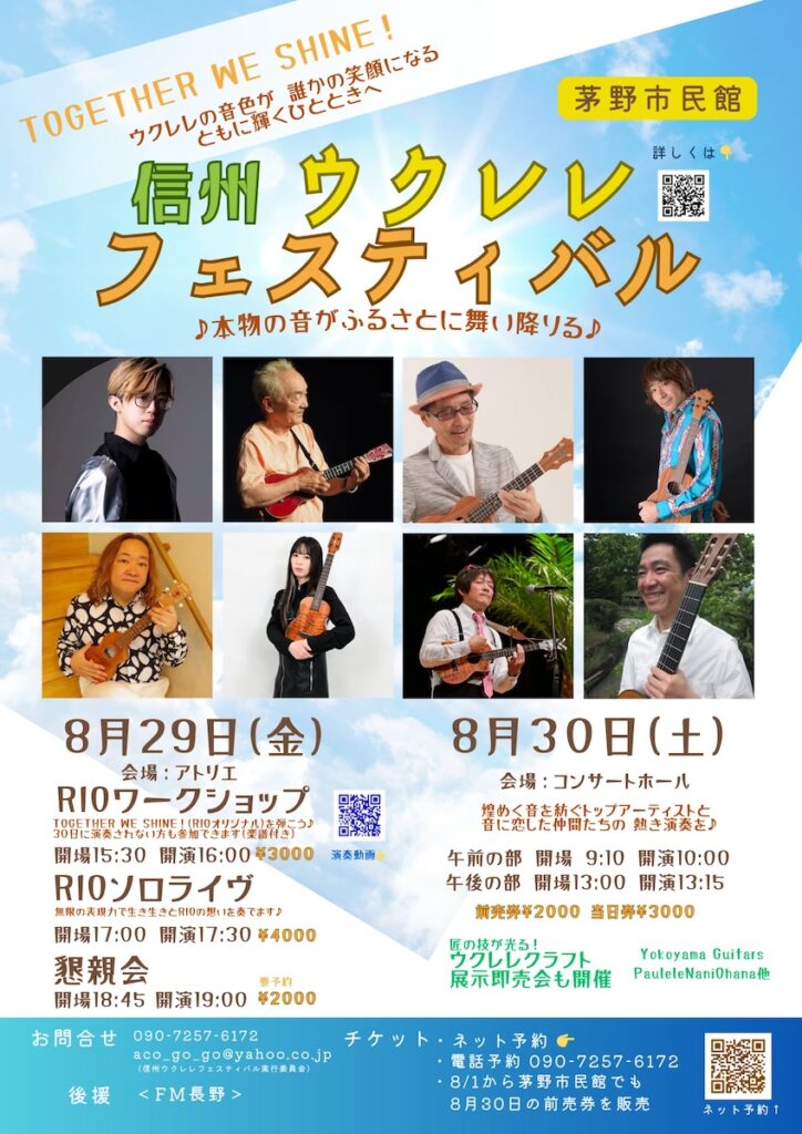 今月末8/30に、茅野市民館 コンサートホールで開催の「信州ウクレレフェスティバル」に出展いたします!