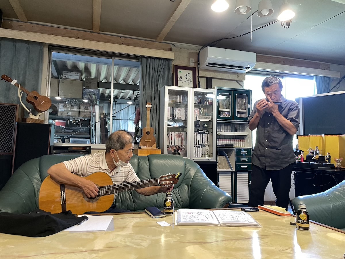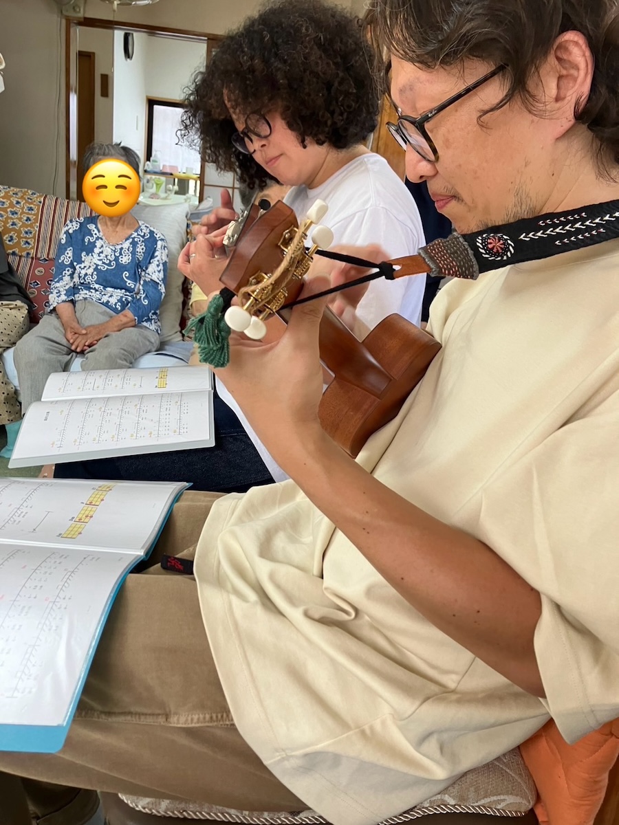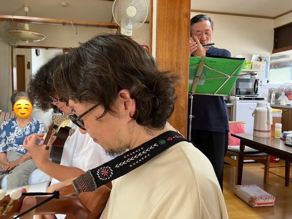 筑北村内にある、いわゆるデイサービスですが、利用者の皆さまの前で、ハーモニカ(前山さん)とウクレレ(協力隊 髙橋さん、橋川夫妻の3名)の合奏をしてきました。
