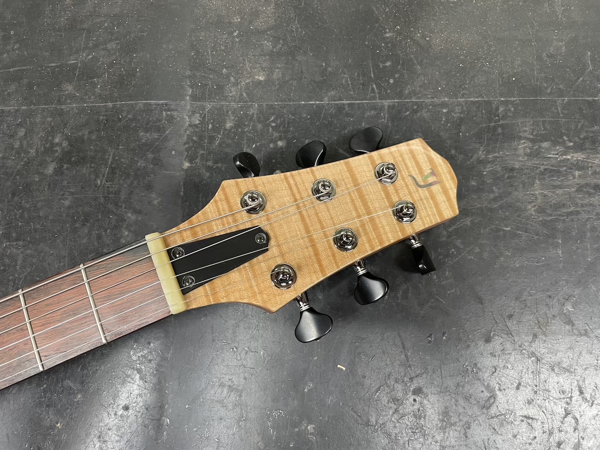 今後、製作される事はないと思いますが、Yokoyama Guitarsのエレクトリックギター。「Leaf」のフレイムメイプルトップ、アッシュバック仕様です。
