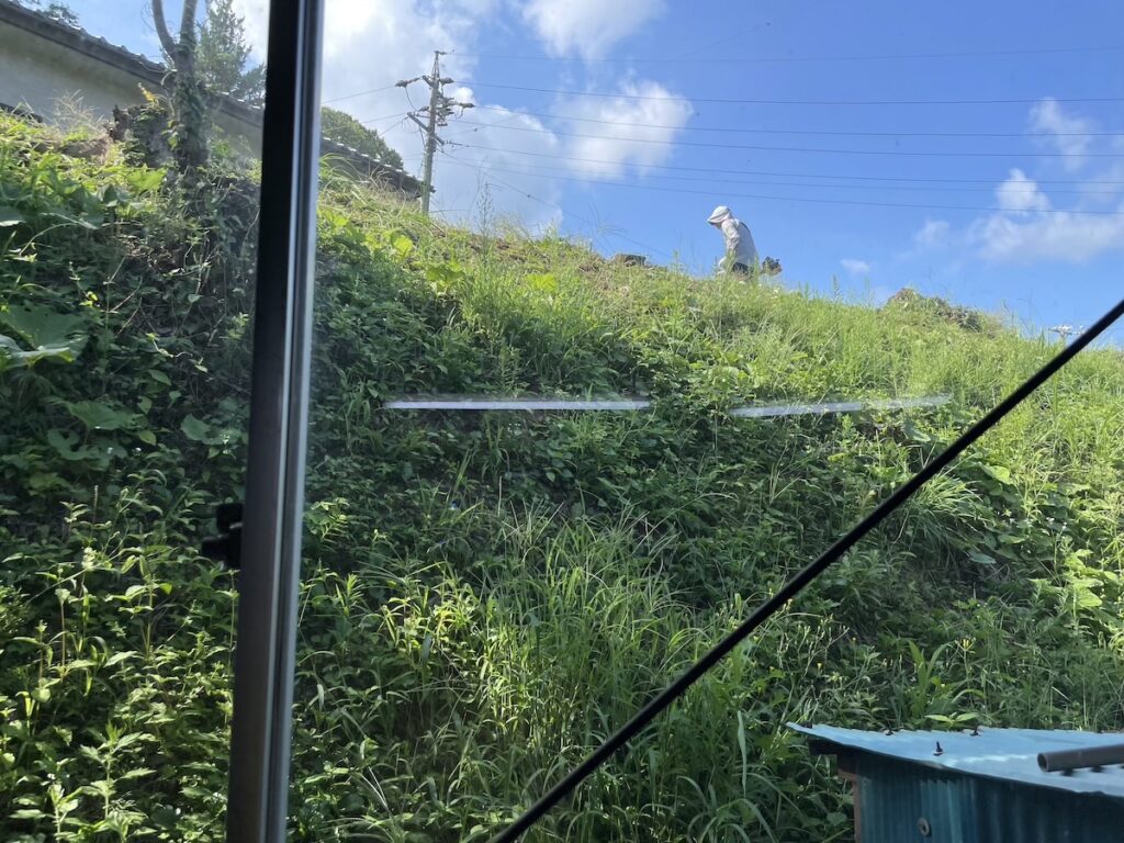 せめて刈っていただいた草を集めて、処理する段取りをお手伝いします。炎天下の中、熱中症にならないように作業します。