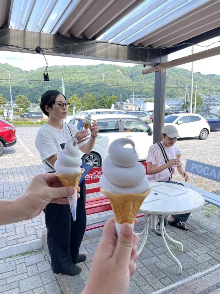 全員でソフトクリームを食べてご満悦。ご主人、Yokoyama Guitars Tシャツを着こなしていただいて、最高です。ありがとうございます。