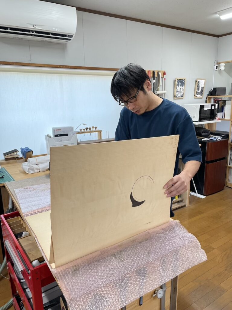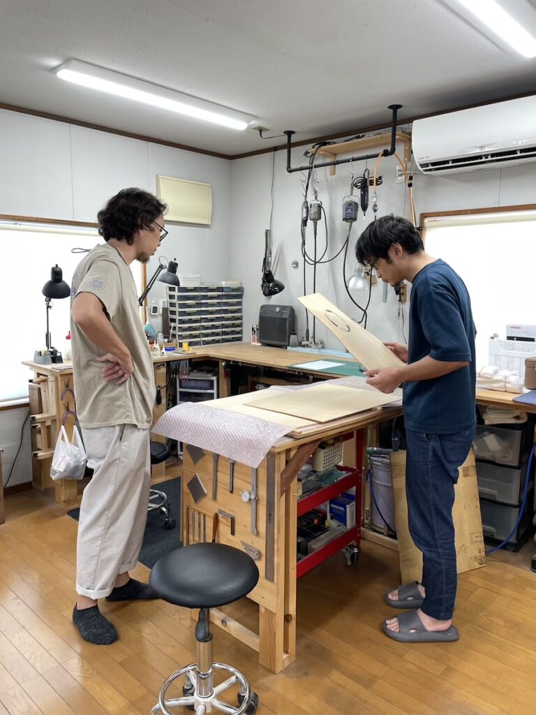 インレイデザインは、予め小川さんにお願いしており、この日は加工をお願いする部材を持ち込んで長野へ戻ります。