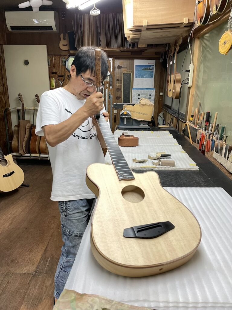 来年、製作家50周年、Yokoyama Guitars工房20周年のアニバーサリーイヤーとなるため、アニバーサリーモデルのインレイを小川さんにお願いします。